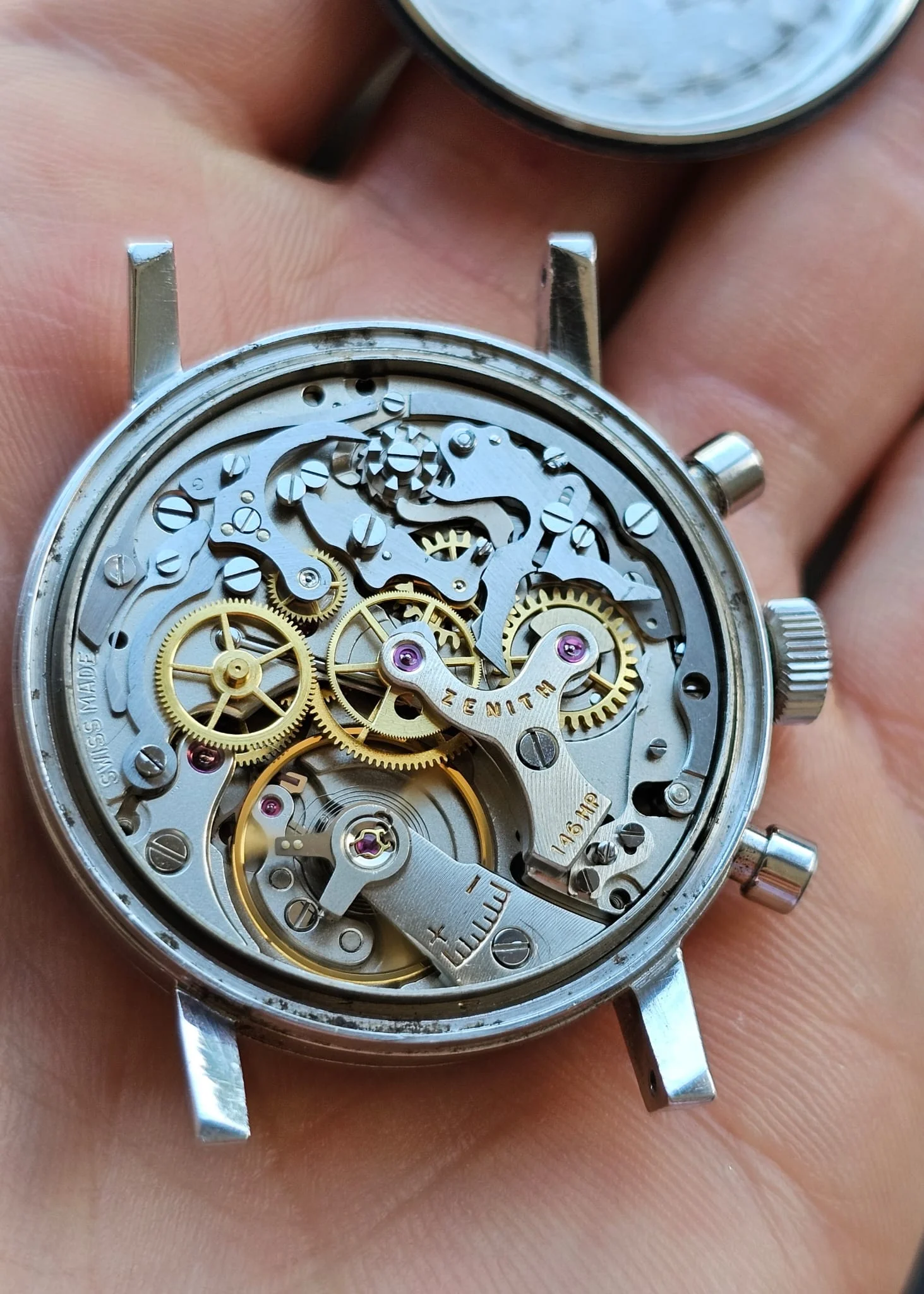 Movement is an original Zenith 146HP. I have no service history, but watch runs smoothly, chrono resets fine.