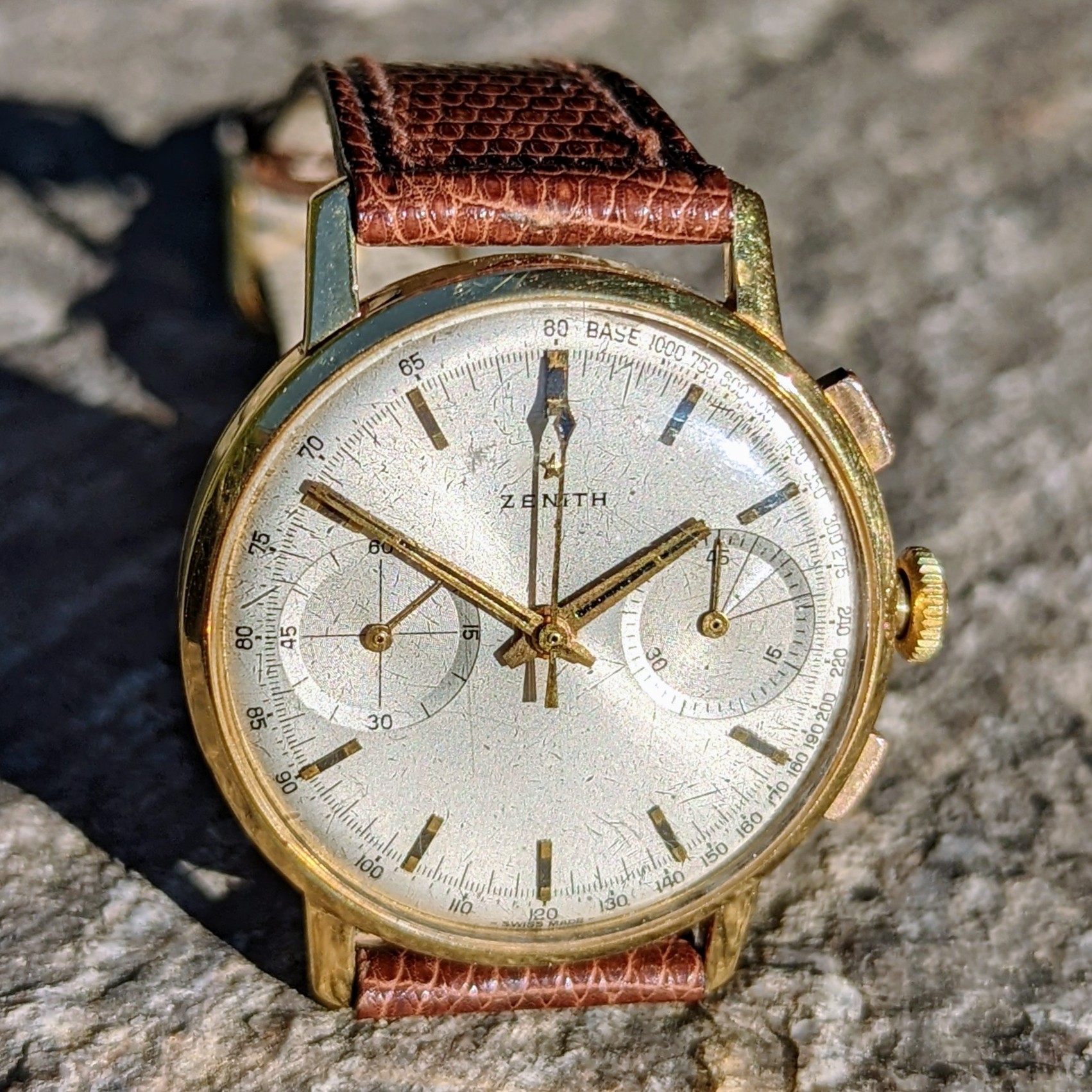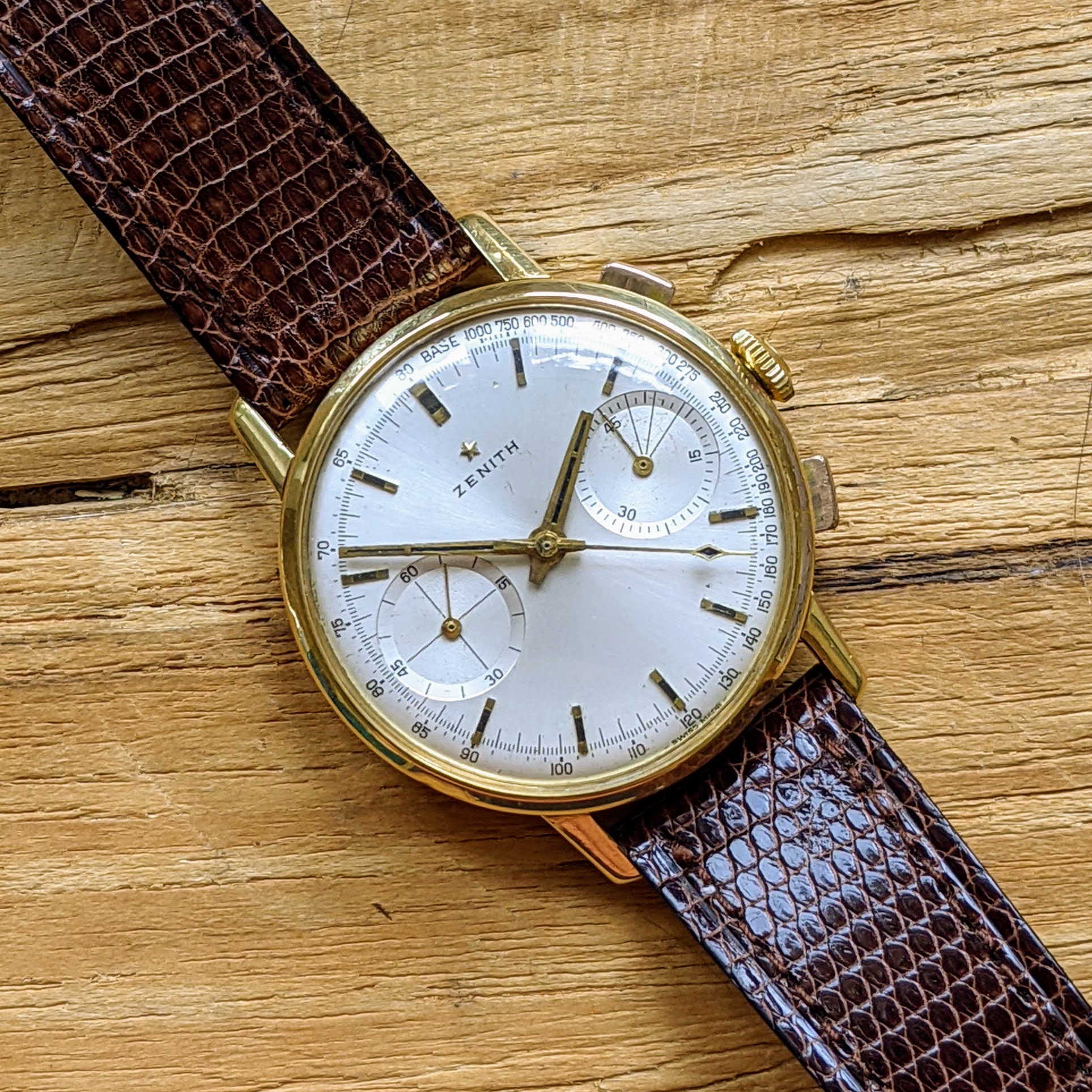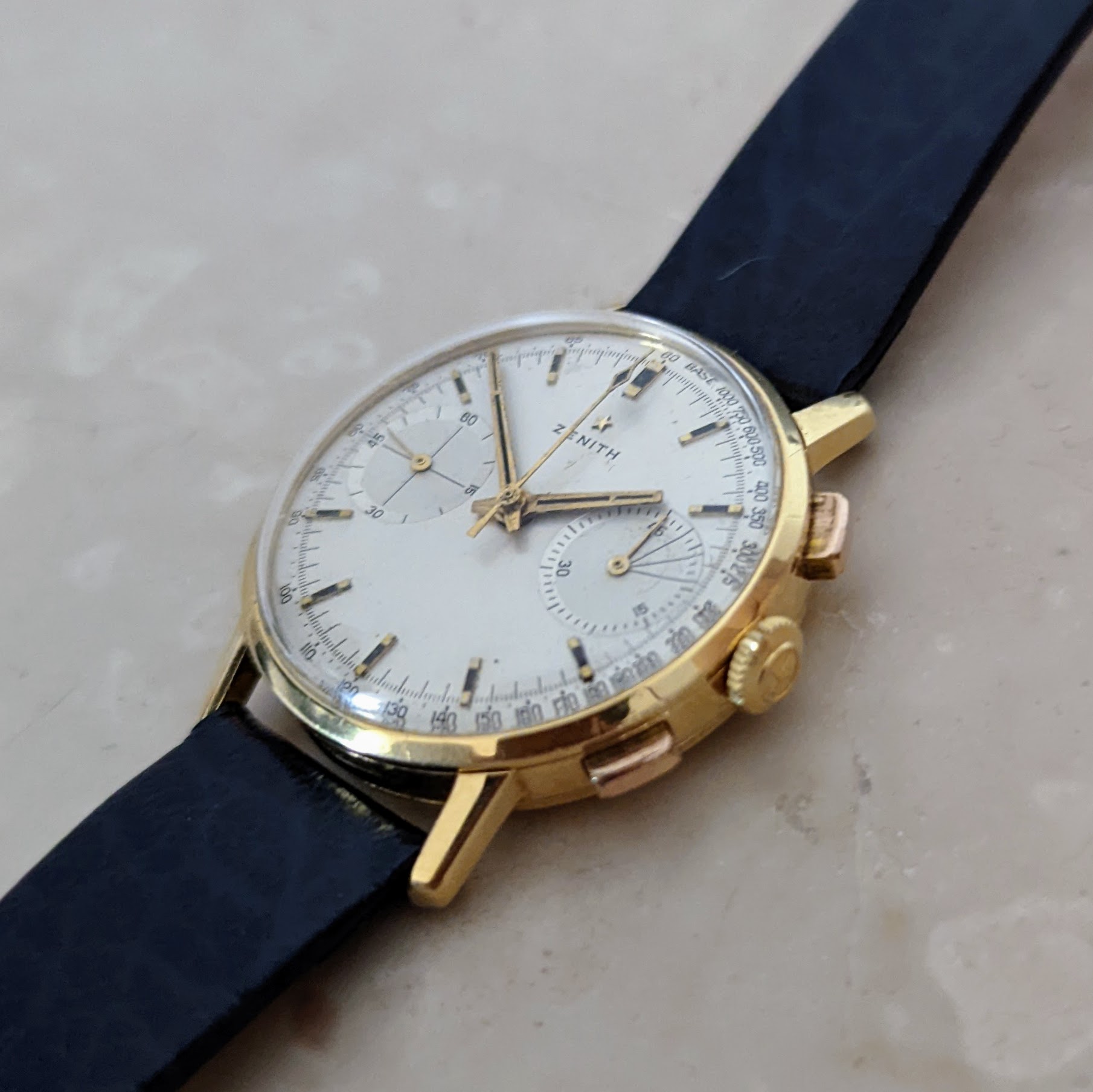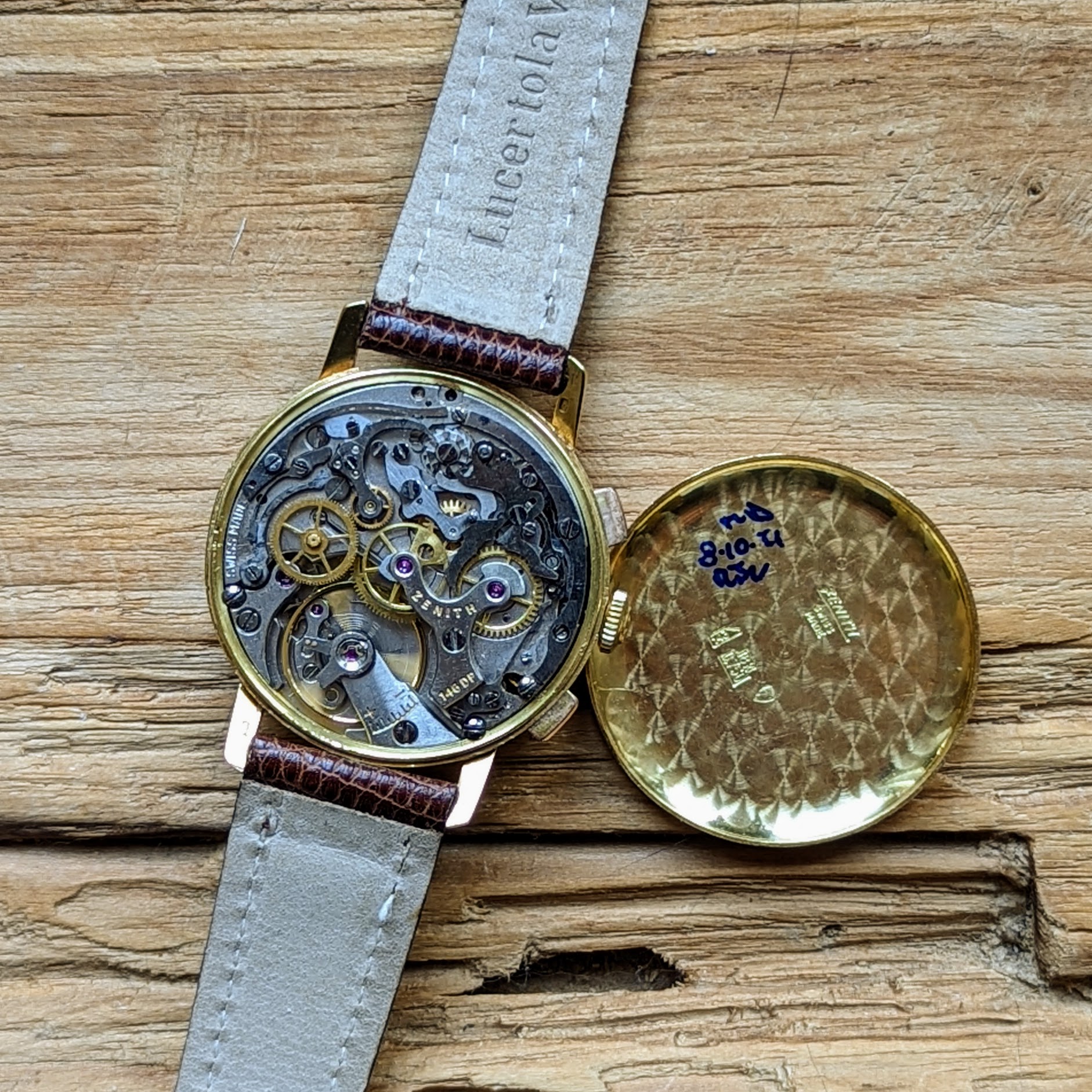 ) and El Primeros. Sometimes I can not resist other Zeniths like this really nice Chrono. Special is the 146DP movement which is usually in CP-2s and was possible at additional charge to be ordered in the gold Chronos.