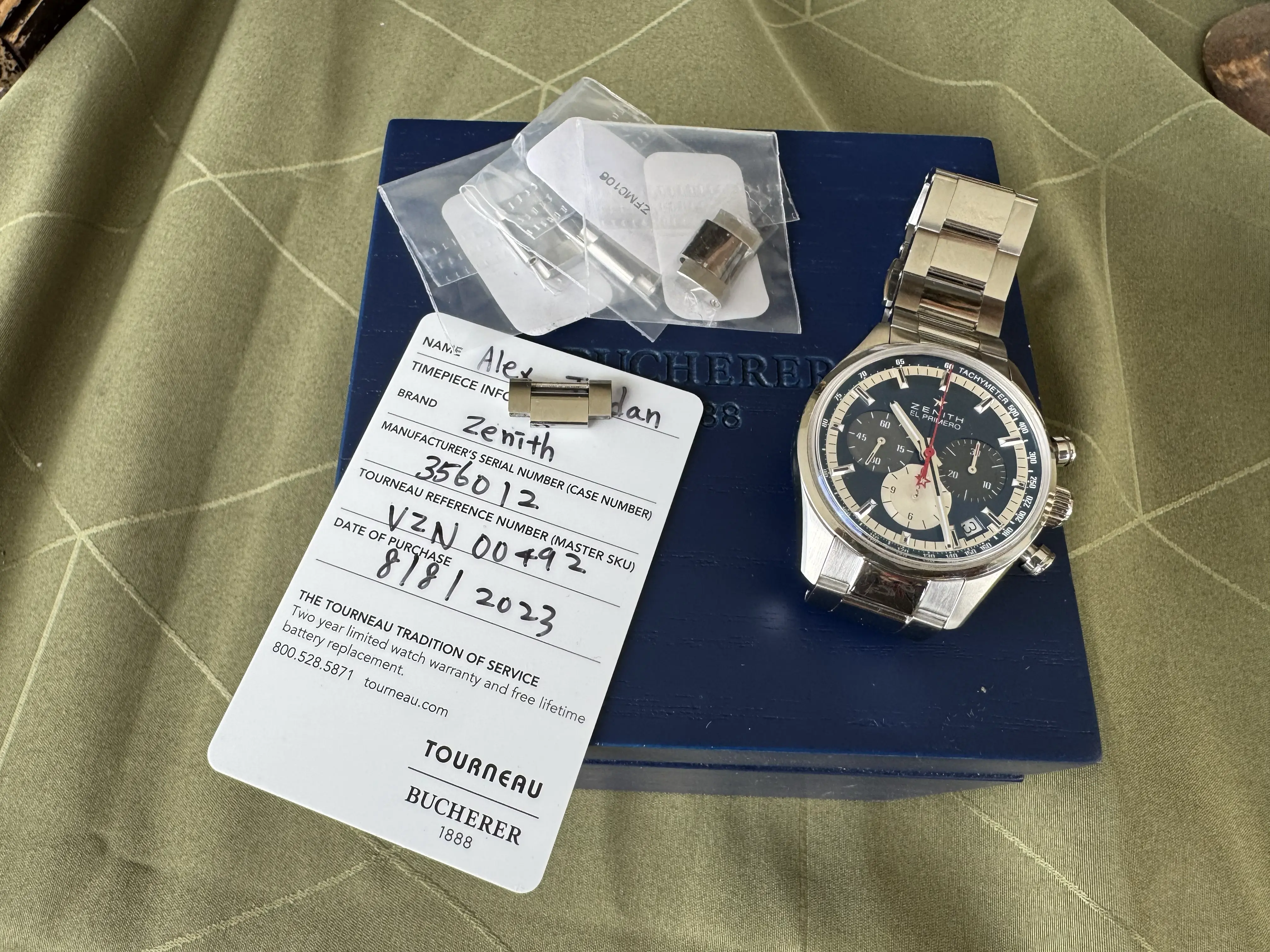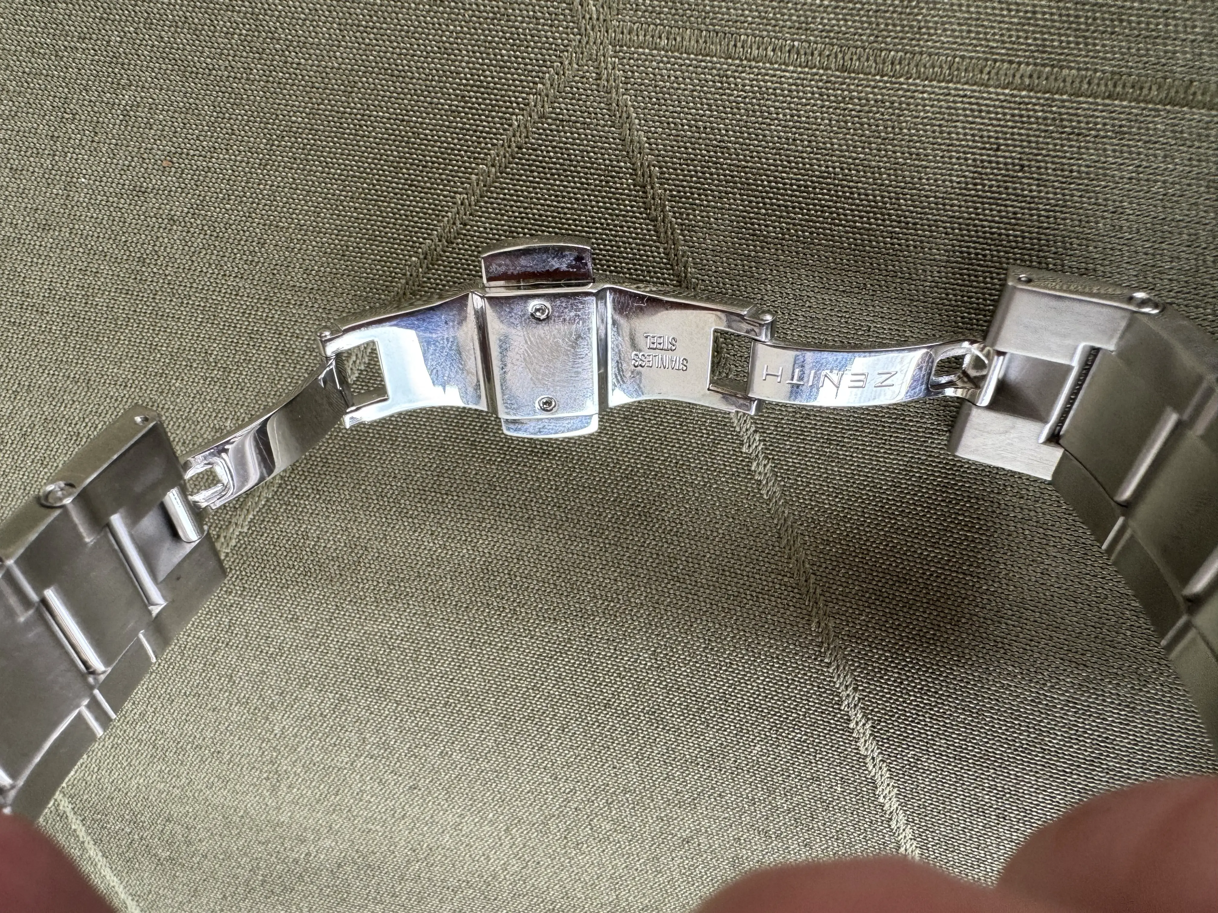 • Bracelet: Comes on the original Zenith steel bracelet with all extra links included (fits larger wrists easily).