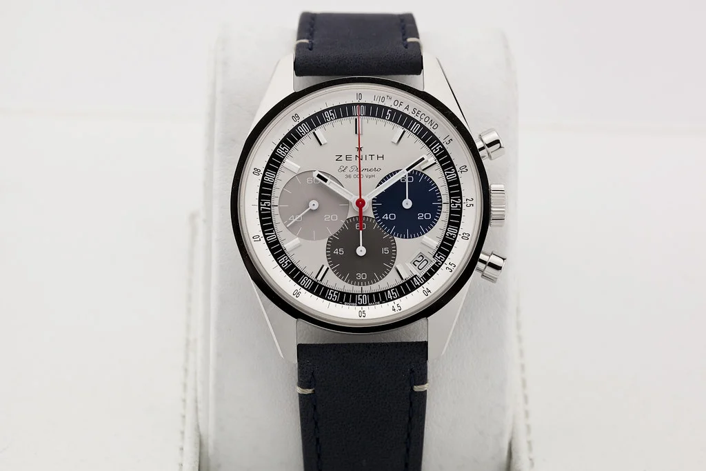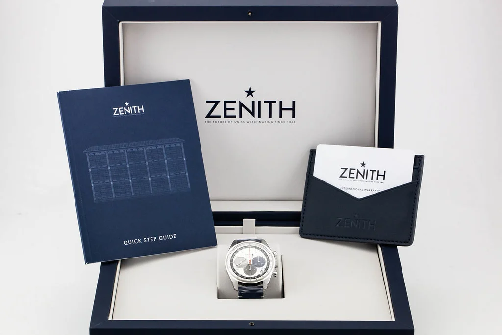 ·Up for sale is a brand new Zenith El Primero Chronomaster 38mm White Dial on Leather Strap, reference # 03.3200.3600/69.C902 It comes complete with all boxes, papers, booklets, and Zenith Warranty Card dated February 2024.