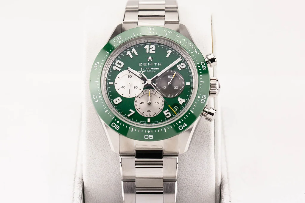·Up for sale is a brand new Zenith Chronomaster Sport Aaron Rodgers Boutique Edition 41mm Green Dial, reference # 03.3117.3600/56.M3100 It comes complete with all boxes and autographed case, papers, booklets, hang tags and Zenith Warranty Card. One of 250 pieces.