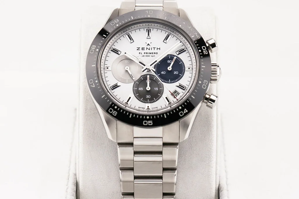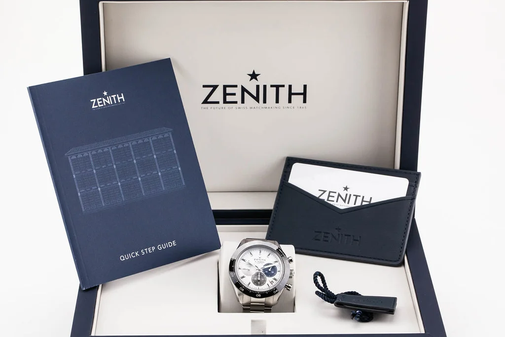 ·Up for sale is an excellent condition Zenith Chronomaster Sport White Dial, reference # 03.3100.3600/69.M3100 It comes complete with all boxes, papers, booklets, hang tag and Zenith Warranty Card dated September 2021.