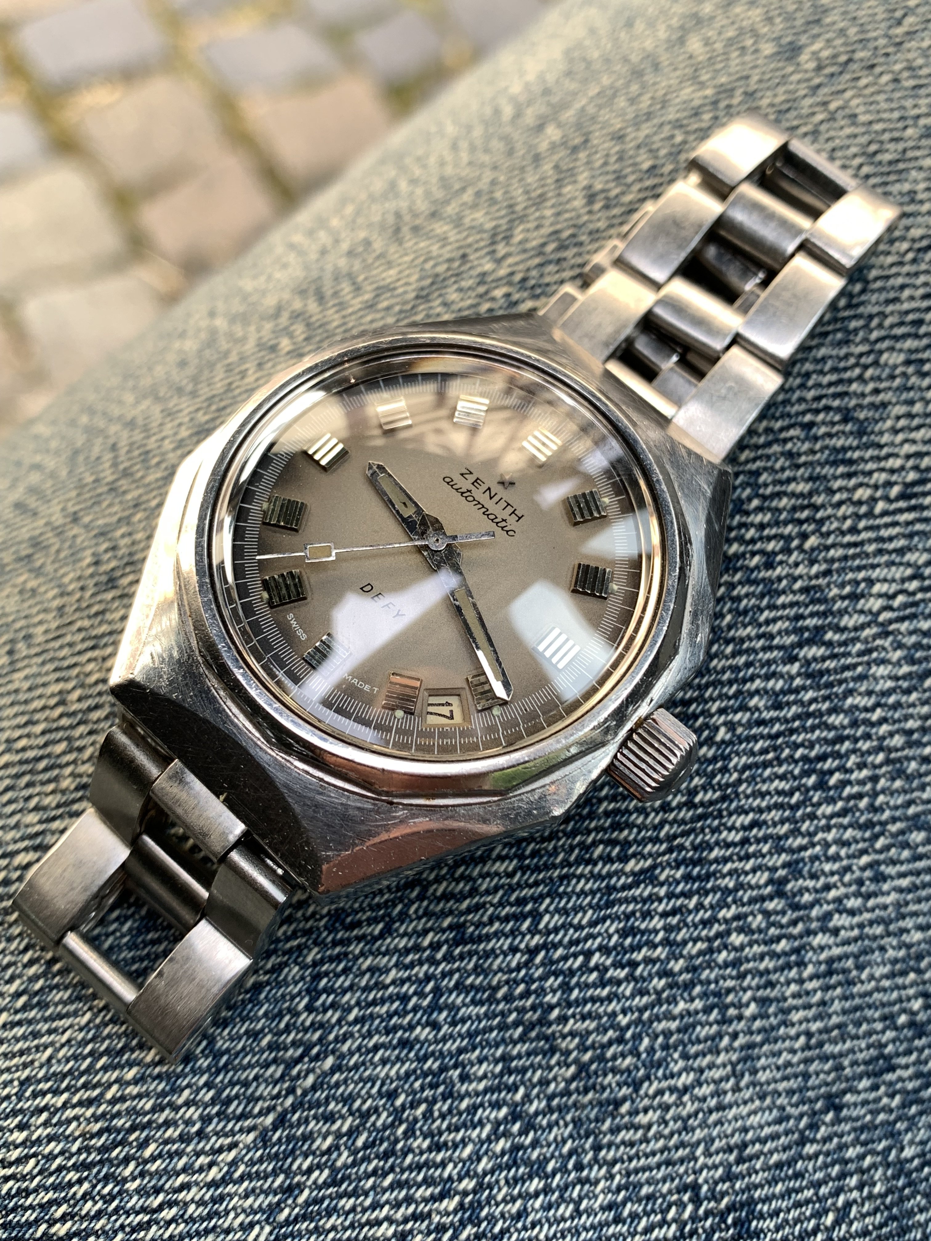 up for sale is a nice and honest Zenith Defy. It’s been recently checked by my watchmaker and runs great. The crystal and all gaskets have been replaced. So the watch is watertight again.