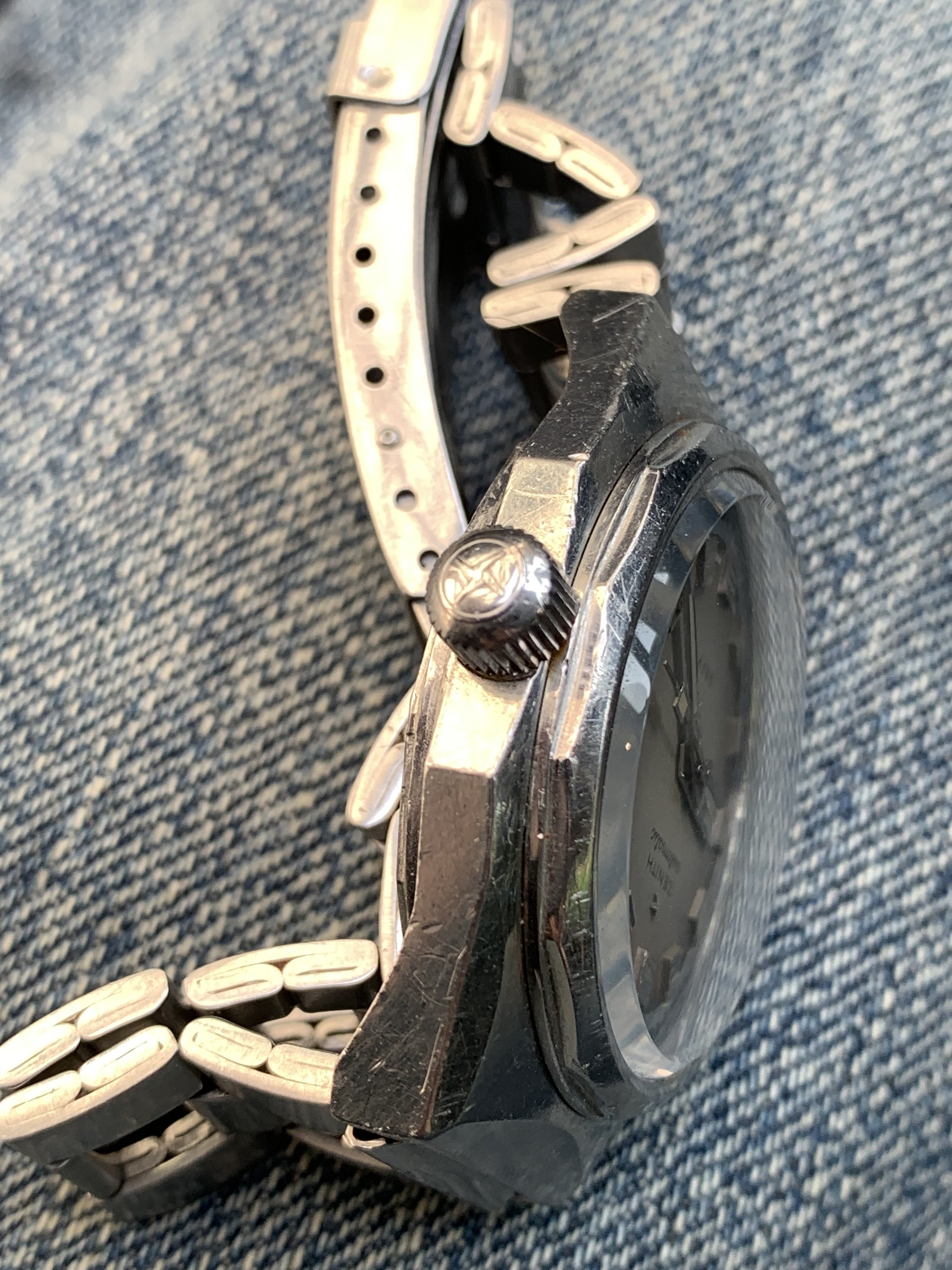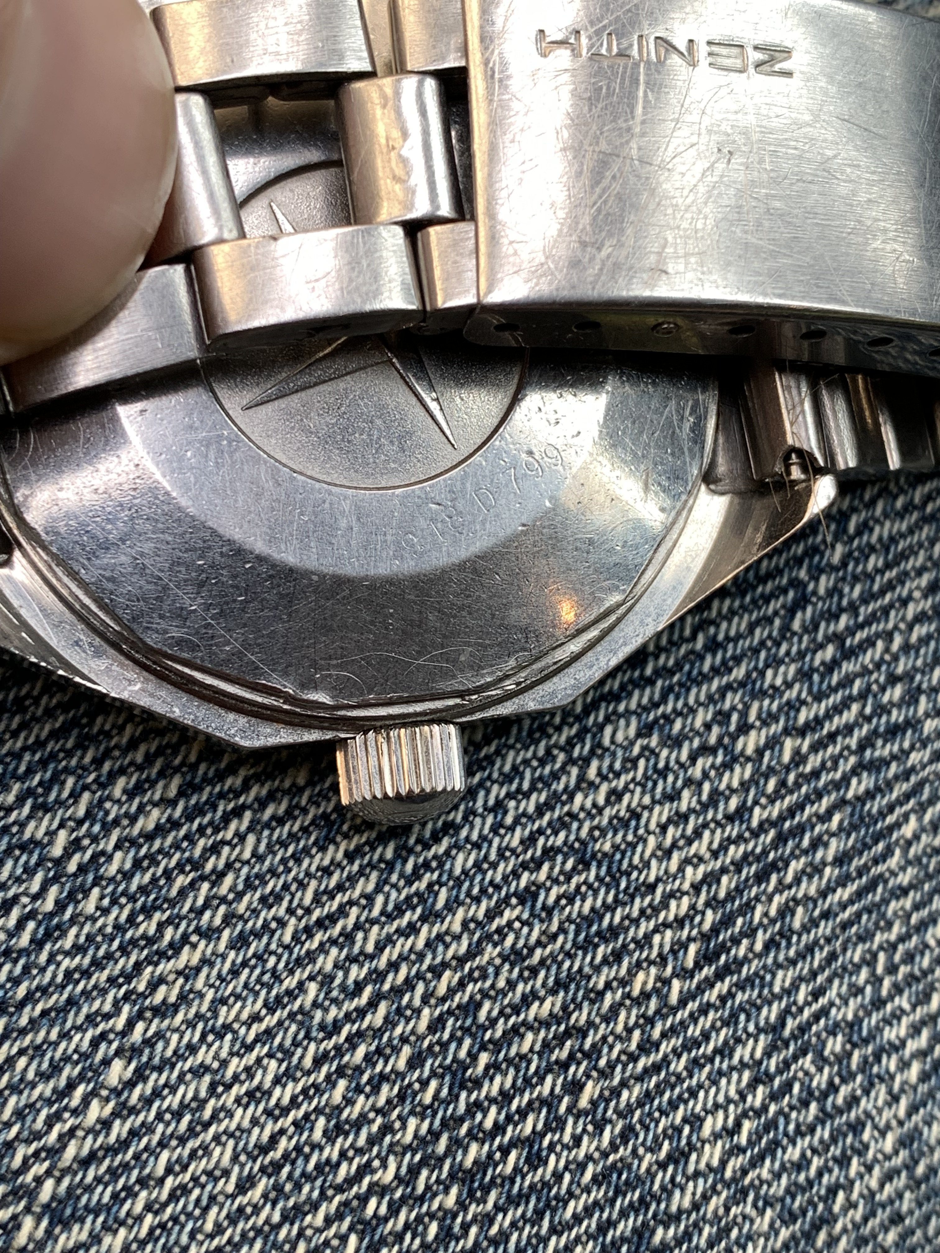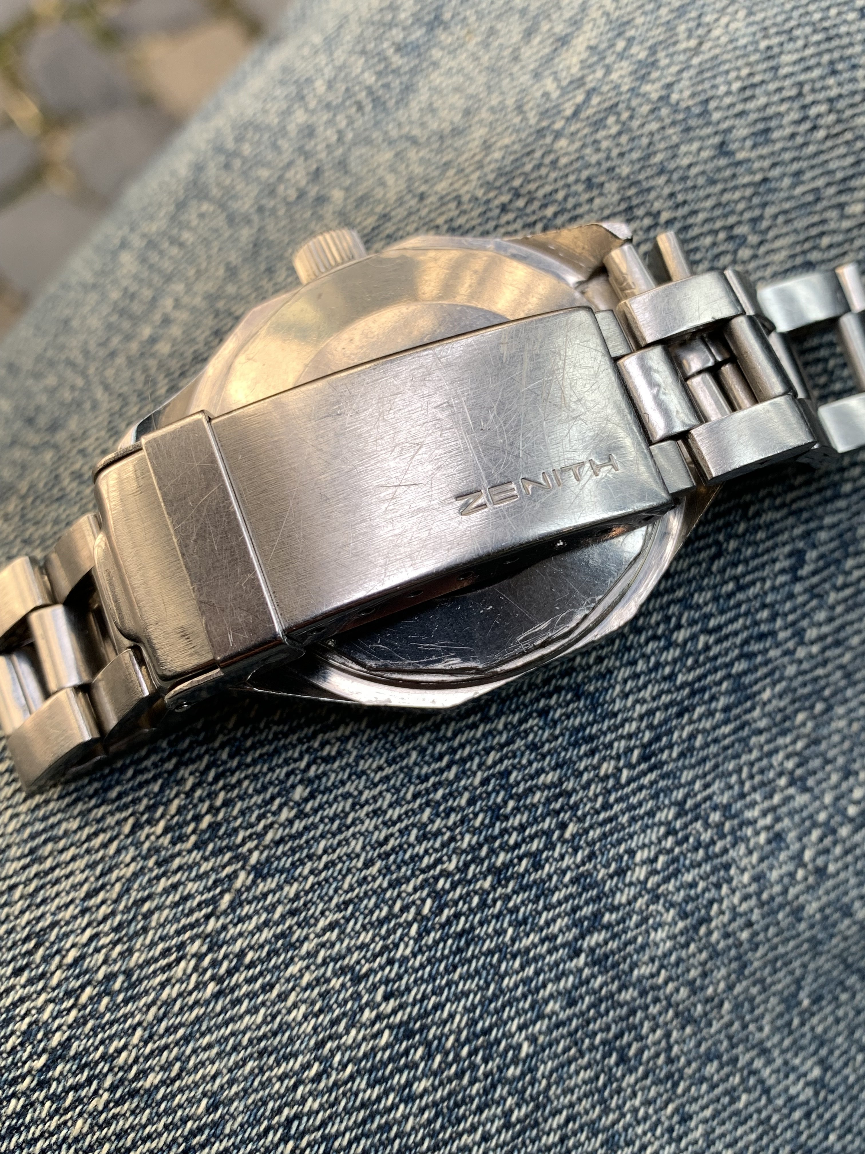 The watch has scratches and signs of wear. It comes on its original GF bracelet with Zenith clasp and correct end links.