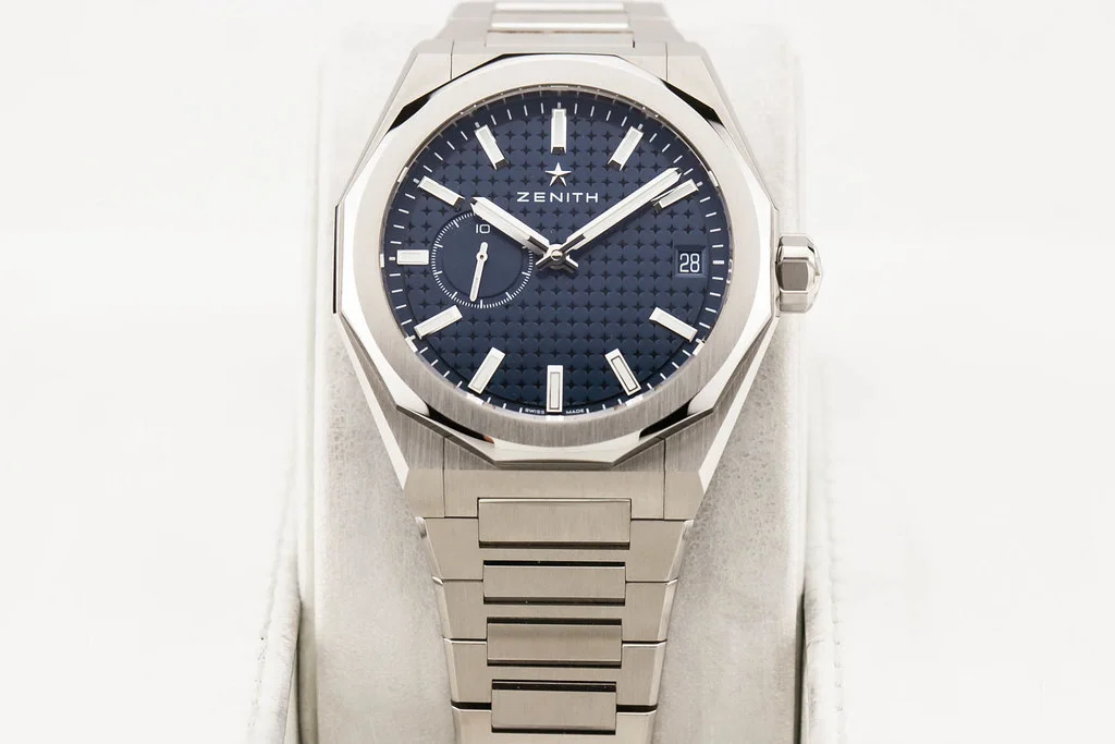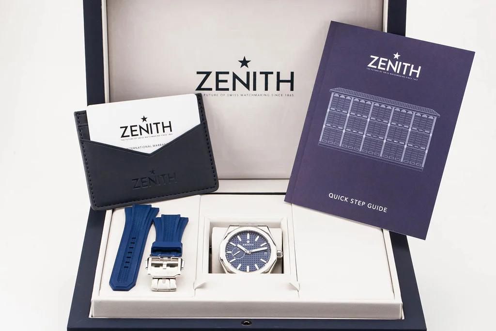 ·Up for sale is an unworn condition Zenith Defy Skyline 41mm Blue Dial, reference # 03.9300.3620/51.I001. It comes complete with all boxes, papers, booklets, rubber strap and Zenith Warranty Card dated April 2025.
