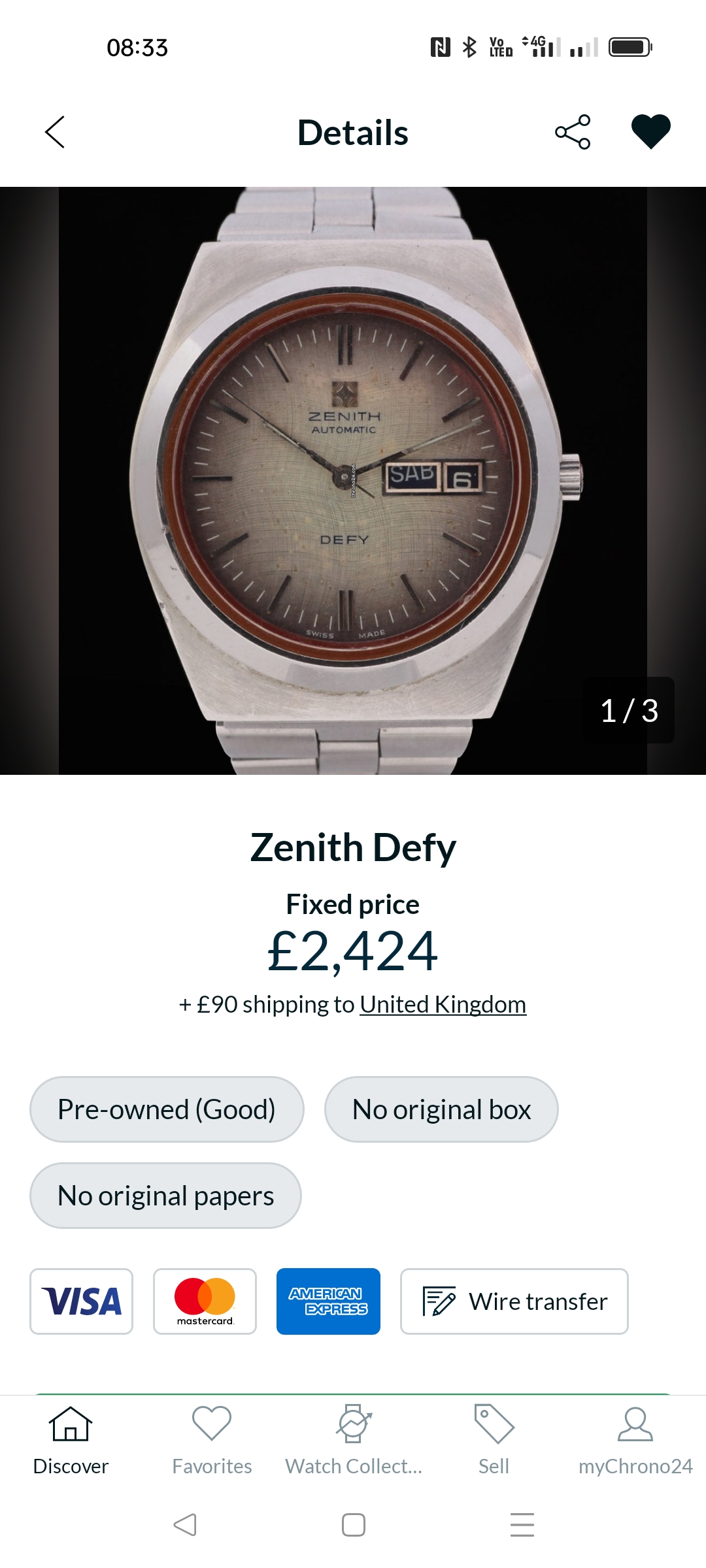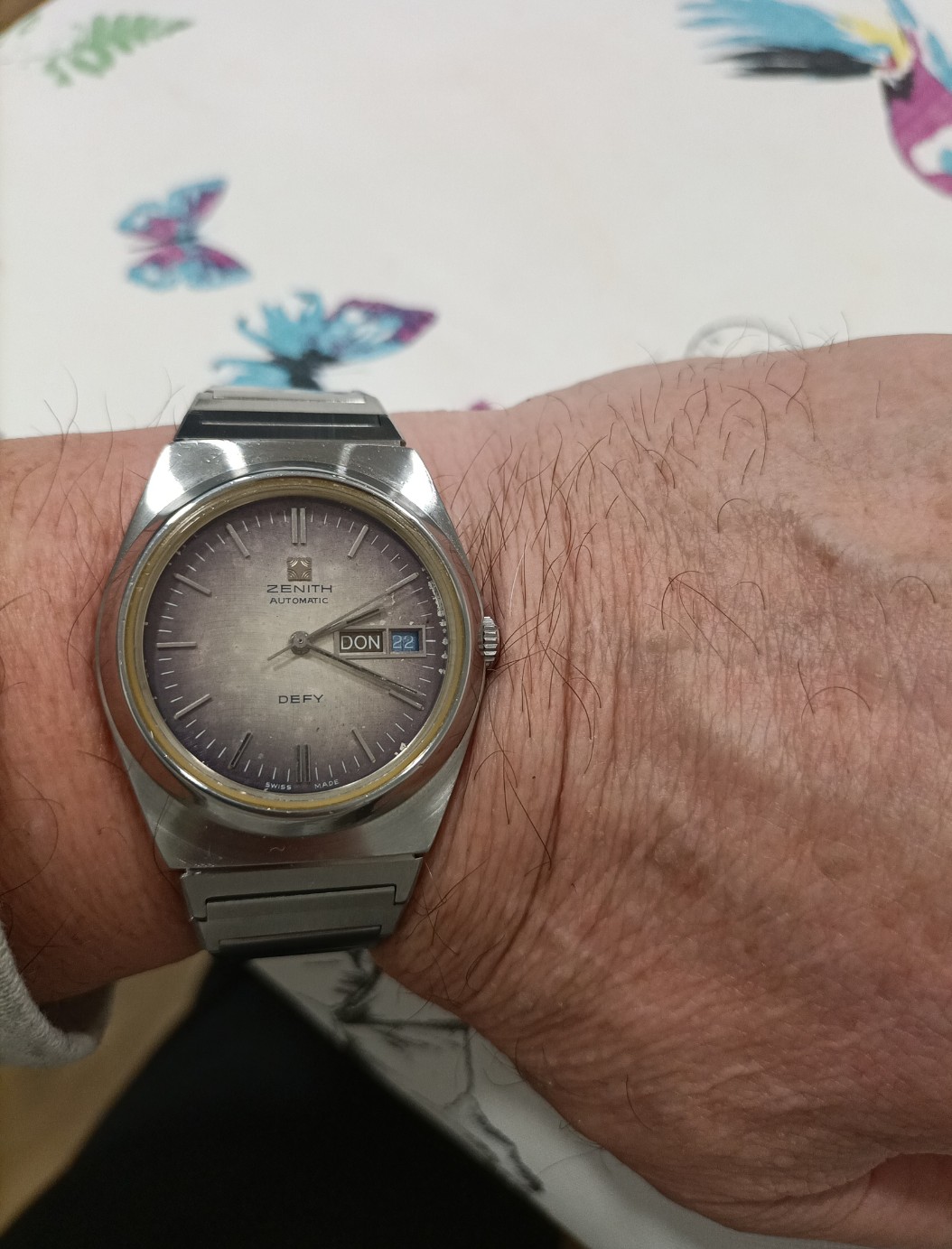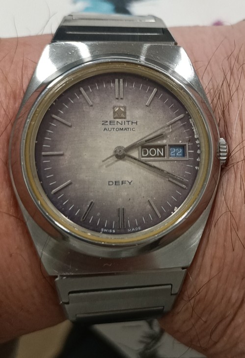 1970's Zenith Defy High Beat with fume dial in excellent vintage condition. The main characteristic of the watch is the attractive and unusual fume dial with a wave pattern and the rare high beat movement Zenith Cal. 34.6 (only fitted in 1978) which runs with 5 HZ / 36'000 beats per hour.