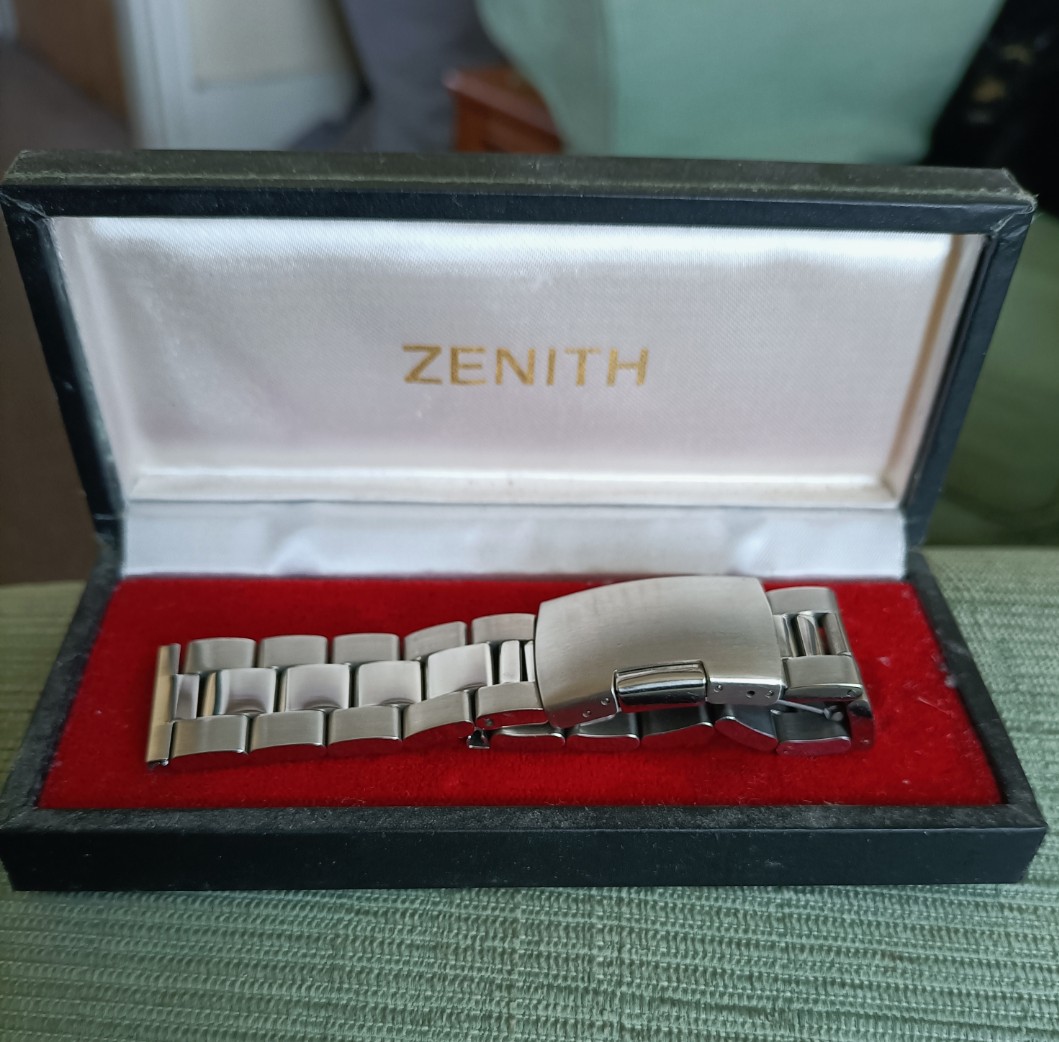 BRACELET: The watch comes on a genuine steel Zenith bracelet with folding clasp.