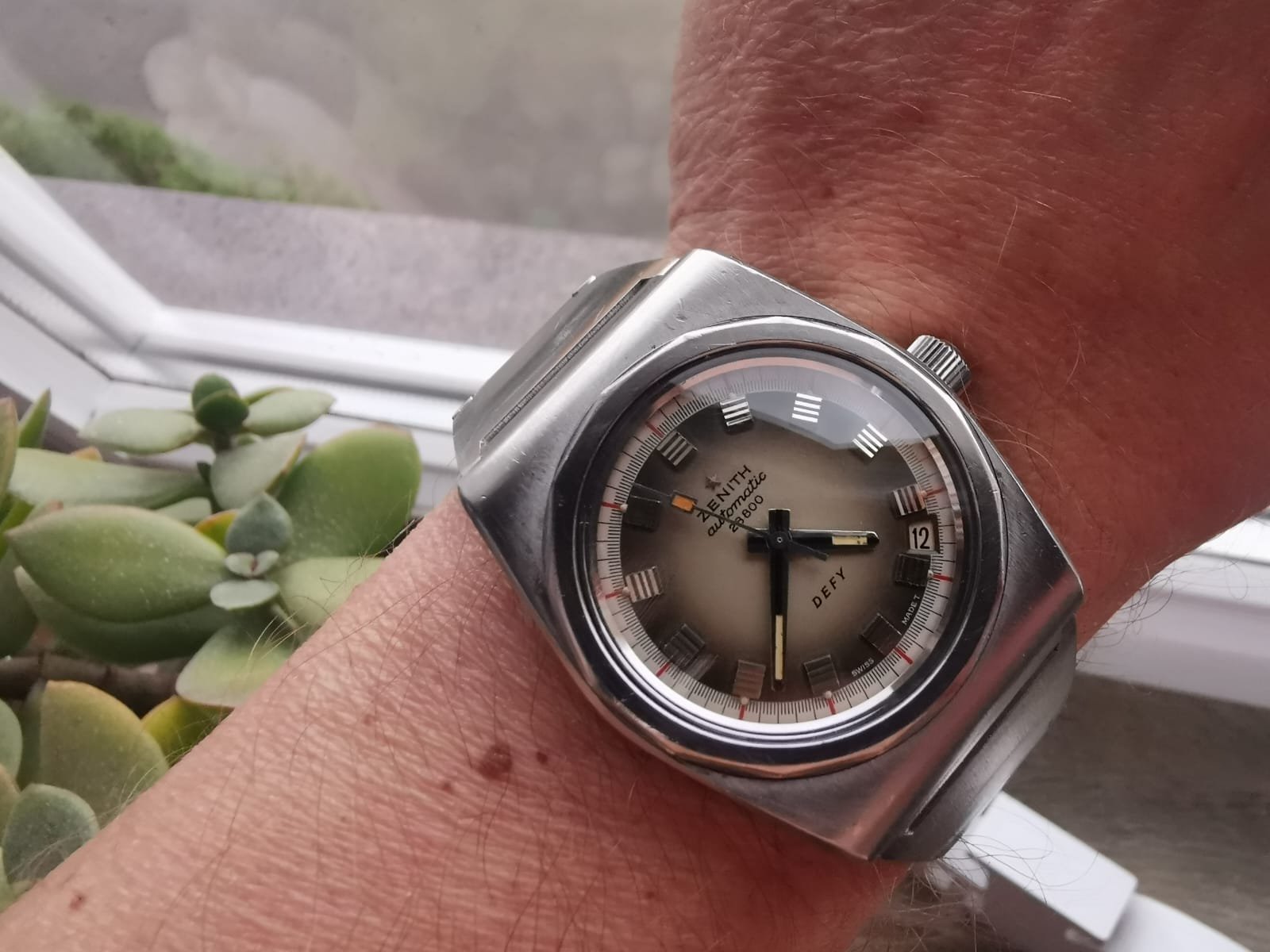 1971 Zenith Defy ref. A7681. Made in 3 colors from 69 to 72, around 5000 each. The A7681 is the first Defy Tonneau case, automatic movement cal. 2562PC.