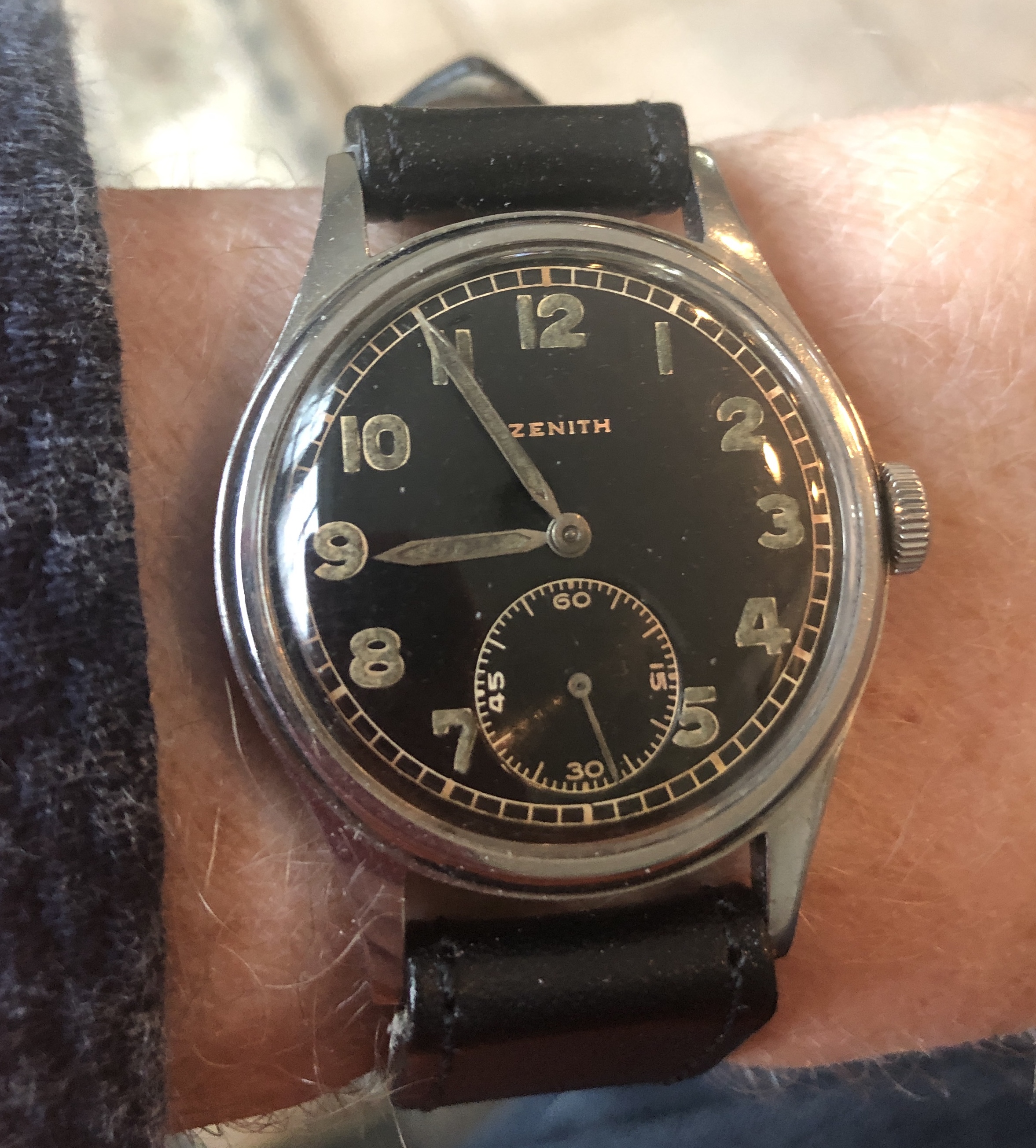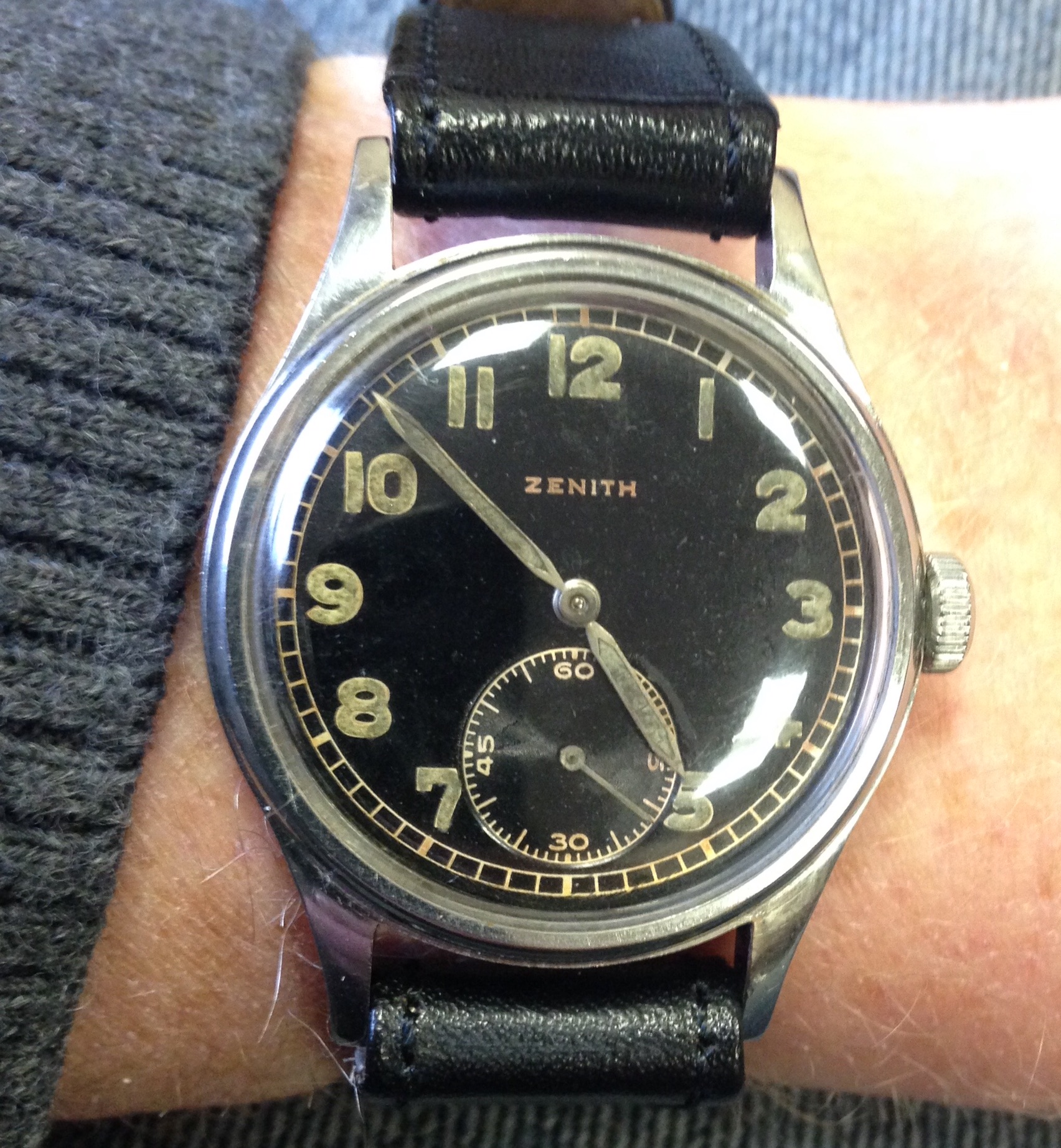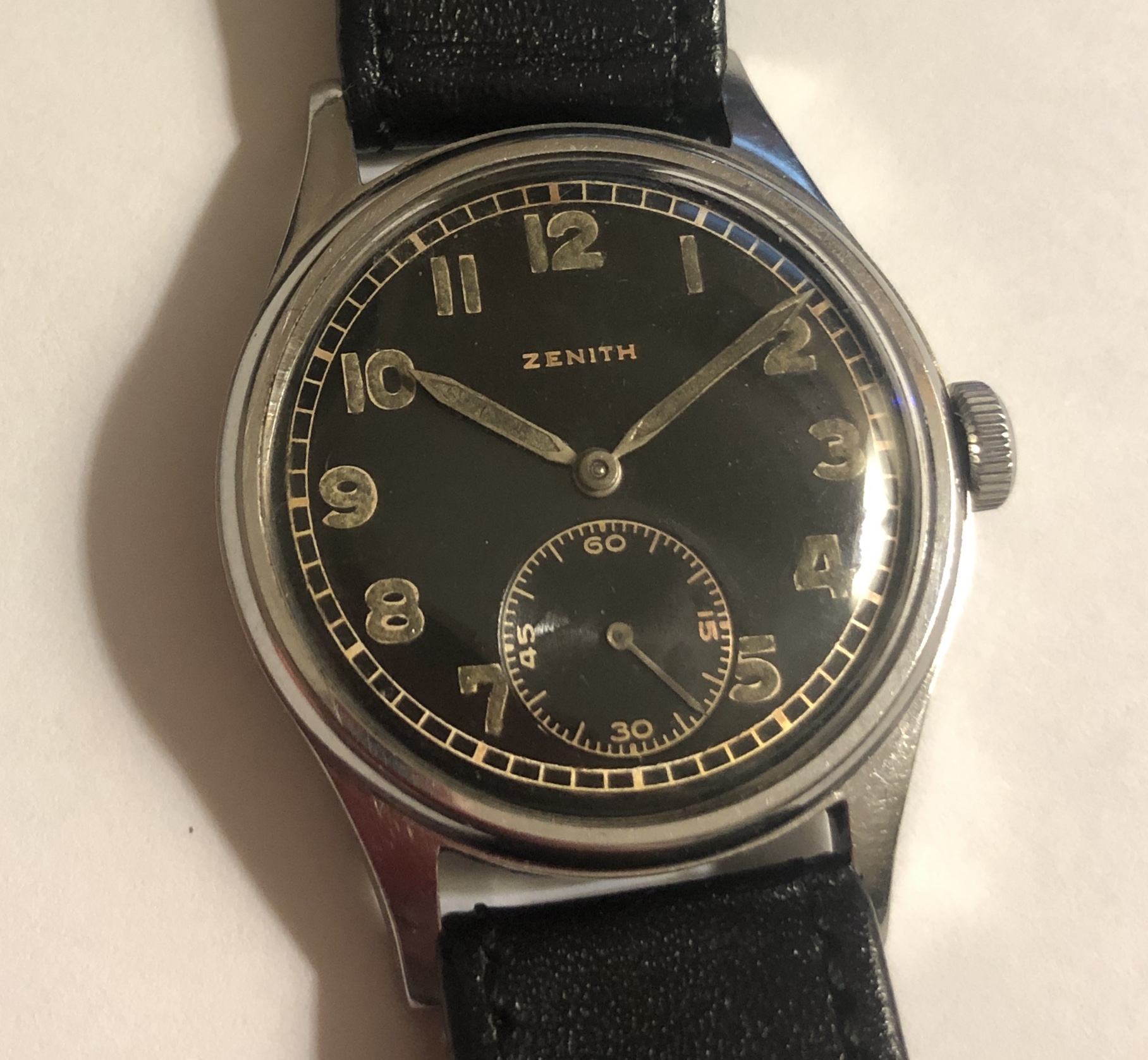 ·Zenith DH, cal. 12-4-6, Stainless steel case. Black gilt radium dial.