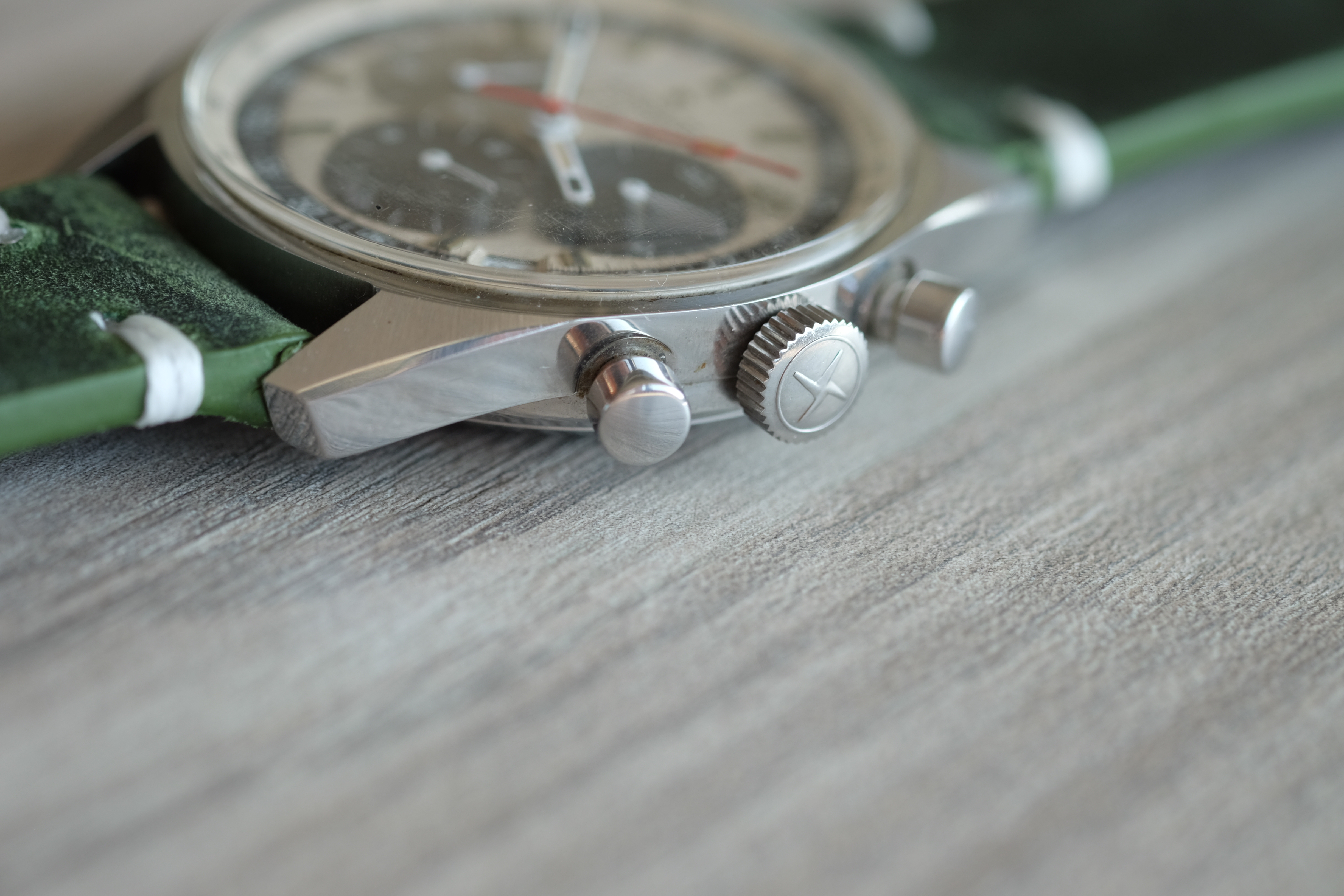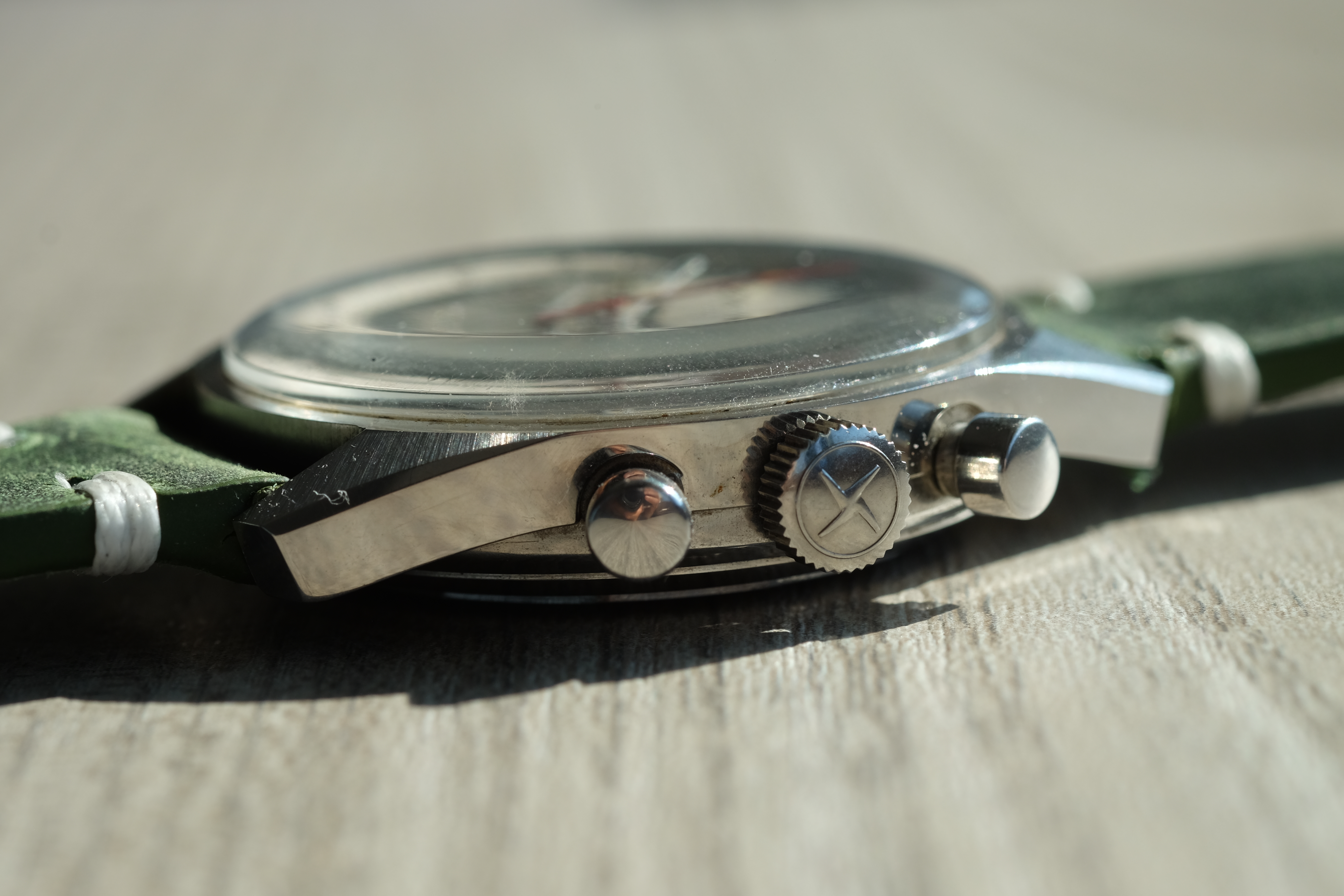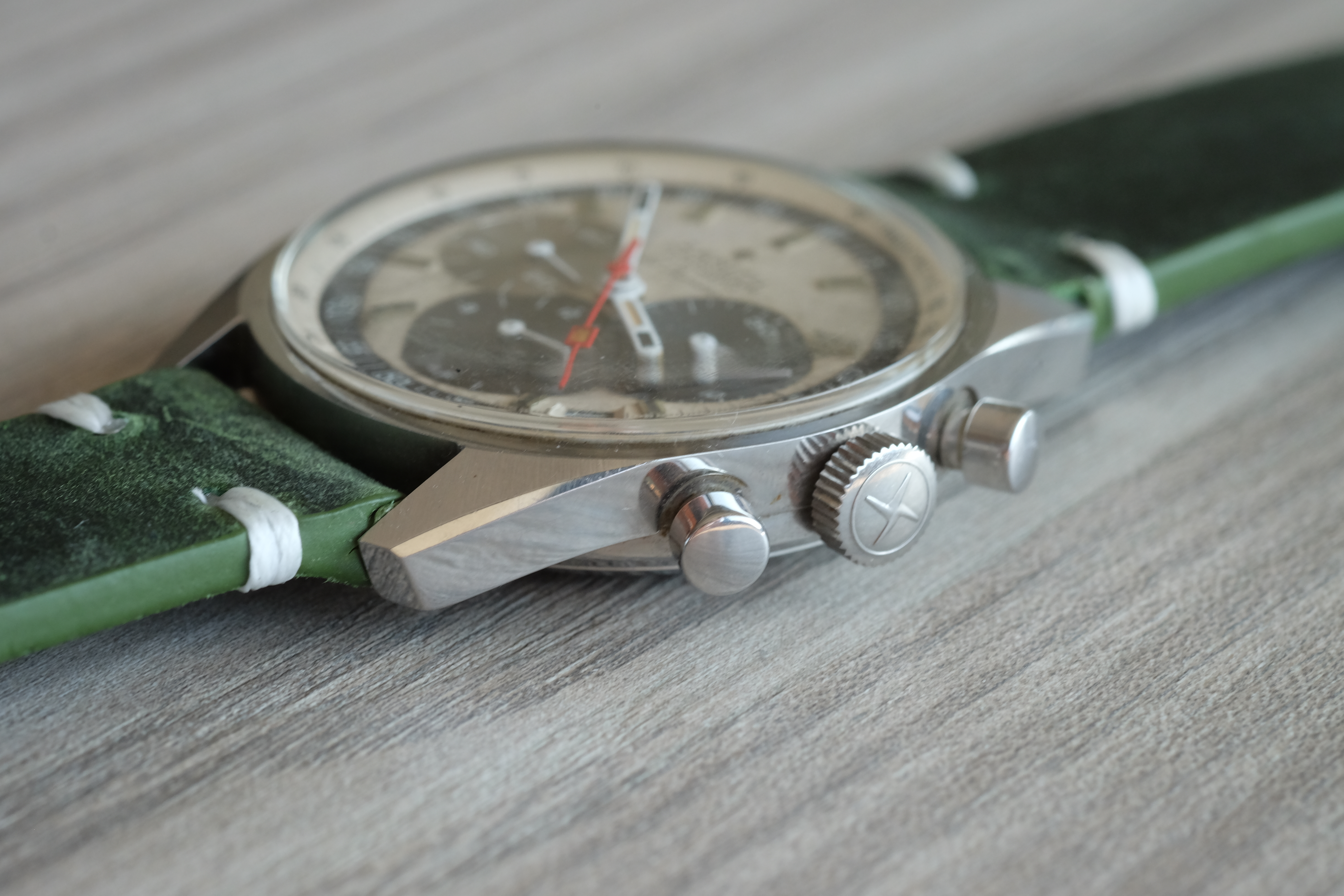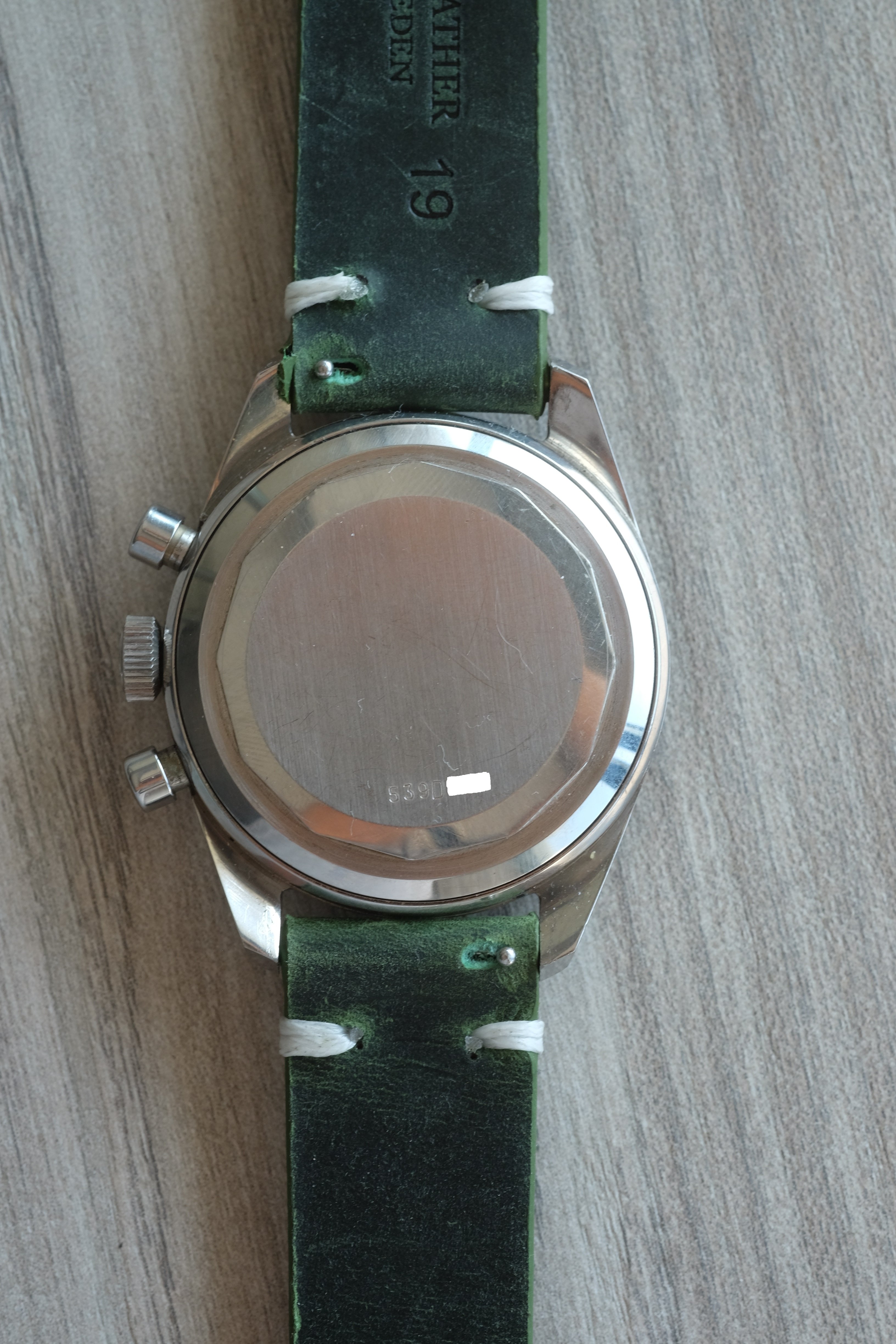 The case is untouched, minor signs or wear, hairline scratches as seen in pictures, as to be expected for a 50 year old watch. I don't know service history but the watch keeps time perfectly and all functions (start-stop-reset) work as they should.