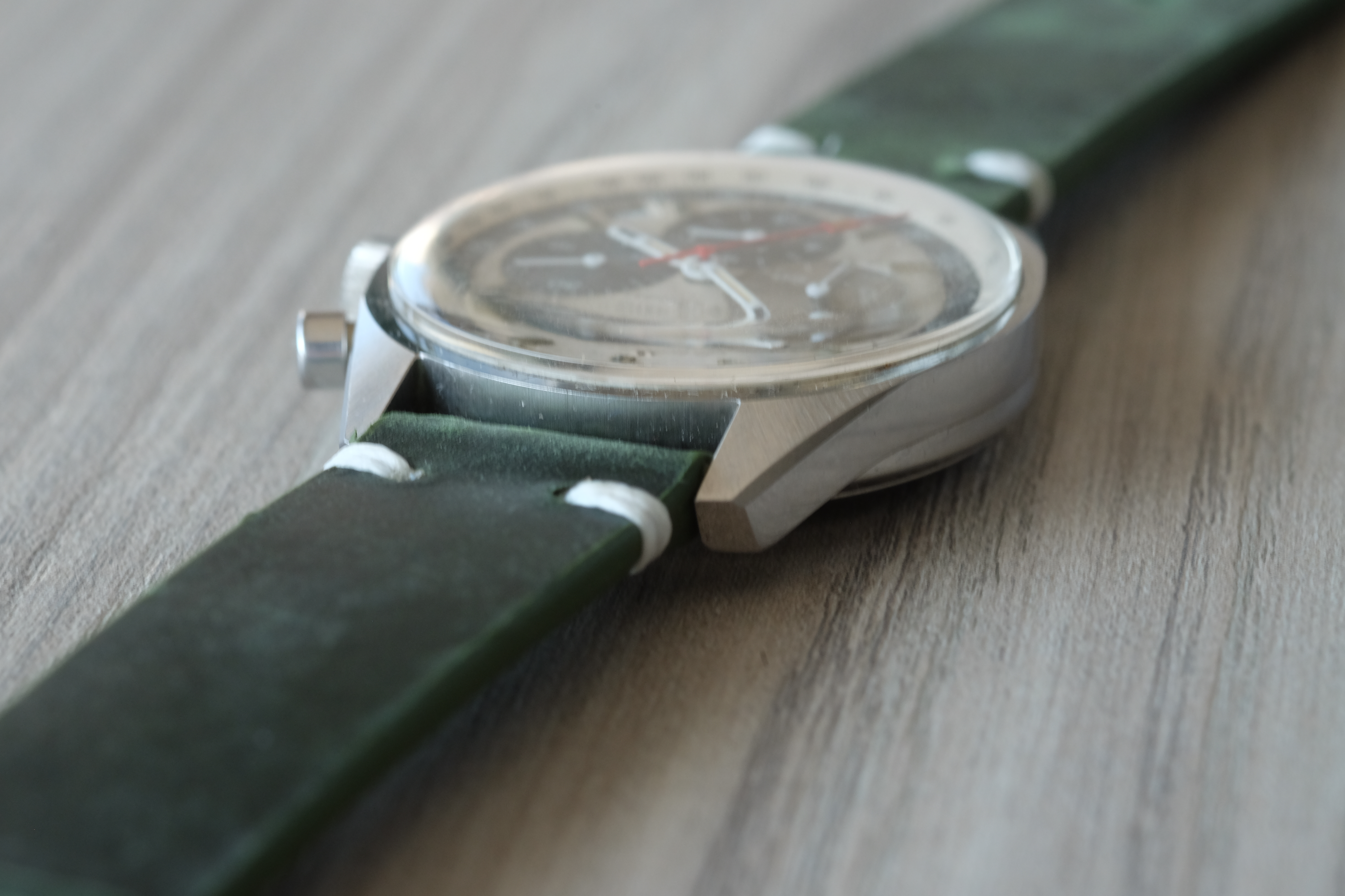 It is equiped with the iconic 3019 PHC high-beat movement, with 36,000 vibrations per hour (5 hz) permitting measurements to a tenth of a second.