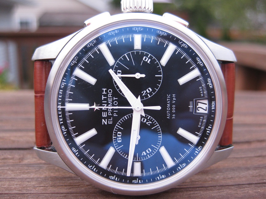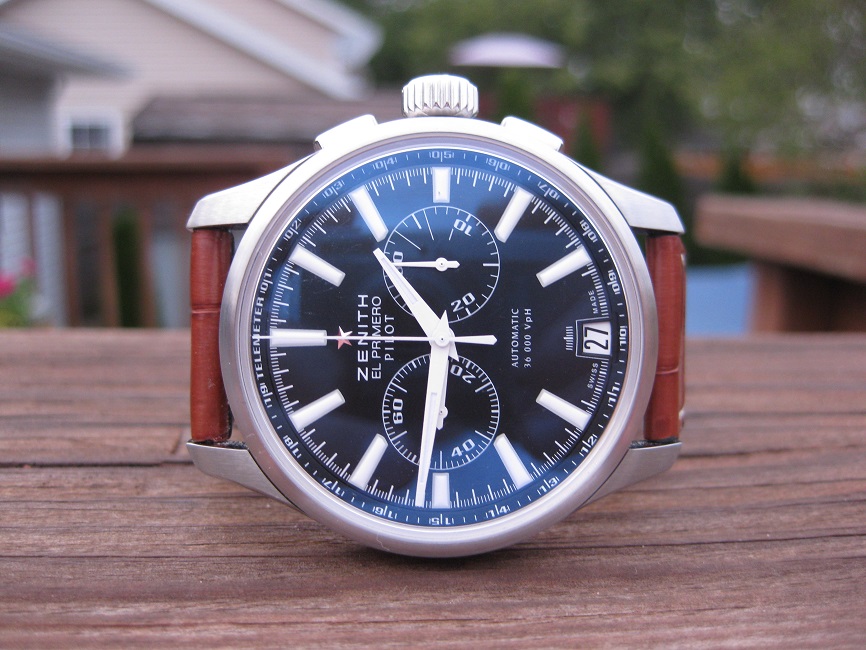 ·Testing the waters here. This was one of my "never" sell watches, but may move it to complete another purchase. This is a 42mm Zenith El Primero Pilot Captain chronograph, looks absolutely beautiful. Very little to no signs of wear, Zenith band is in like new condition. Complete set, with everything from the Zenith AD, warranty card AD stamped and dated. Beautiful watch, if it sells someone will get a excellent watch, if it doesn't it will go back in my collection.
