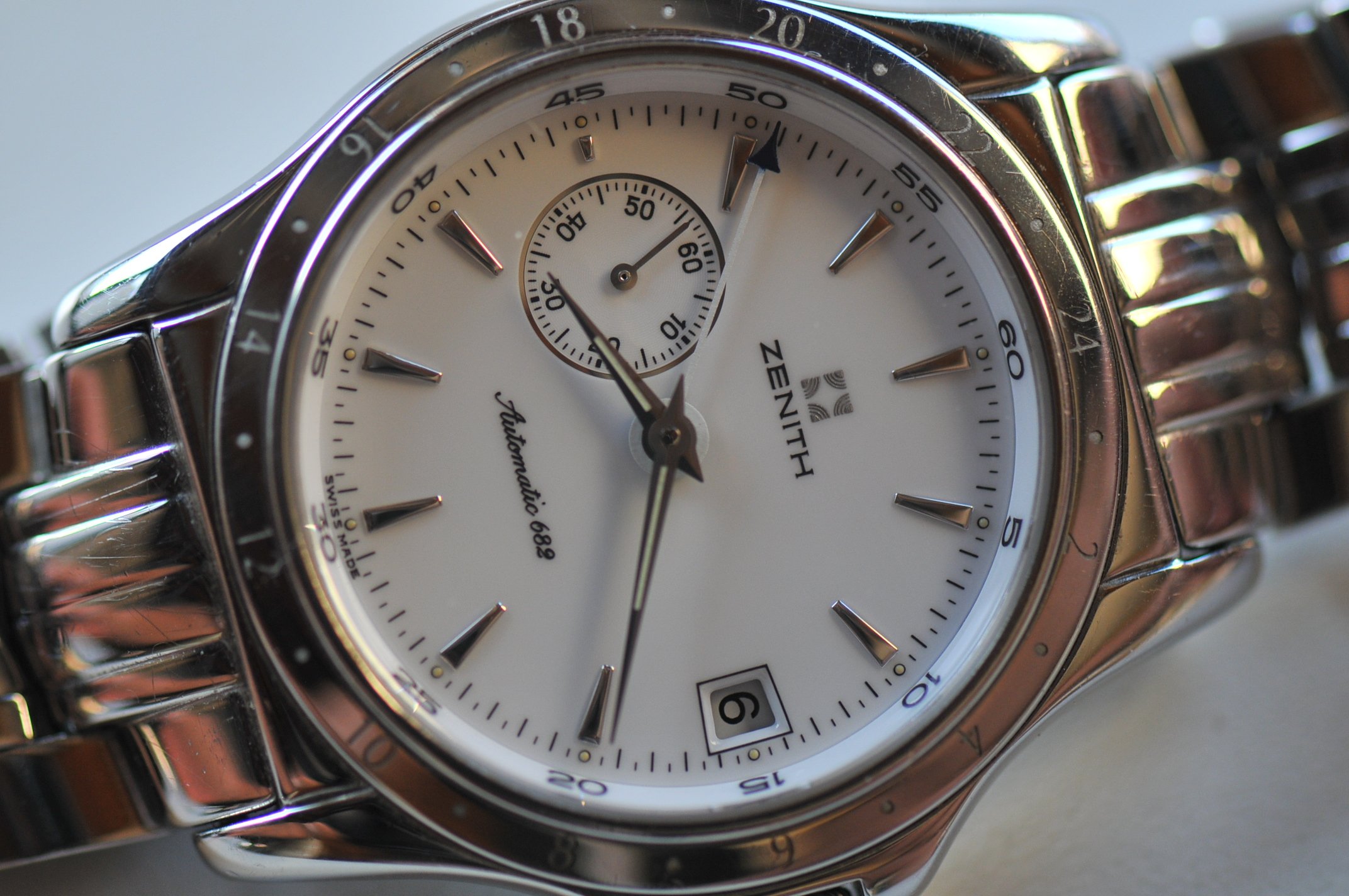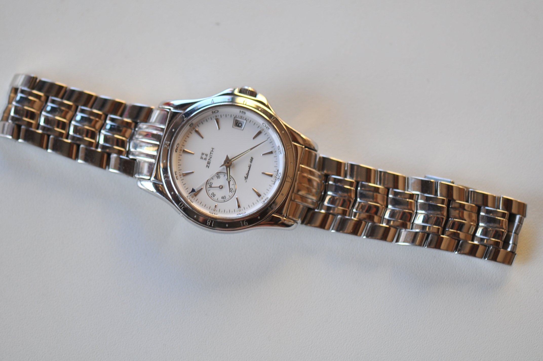 ·I have for sale a nice Zenith watch in very good working condition. It's a stainless steel watch with white dial. A very slim watch with full bracelet. I think now fit even on a larger wrsit size than 22cm.