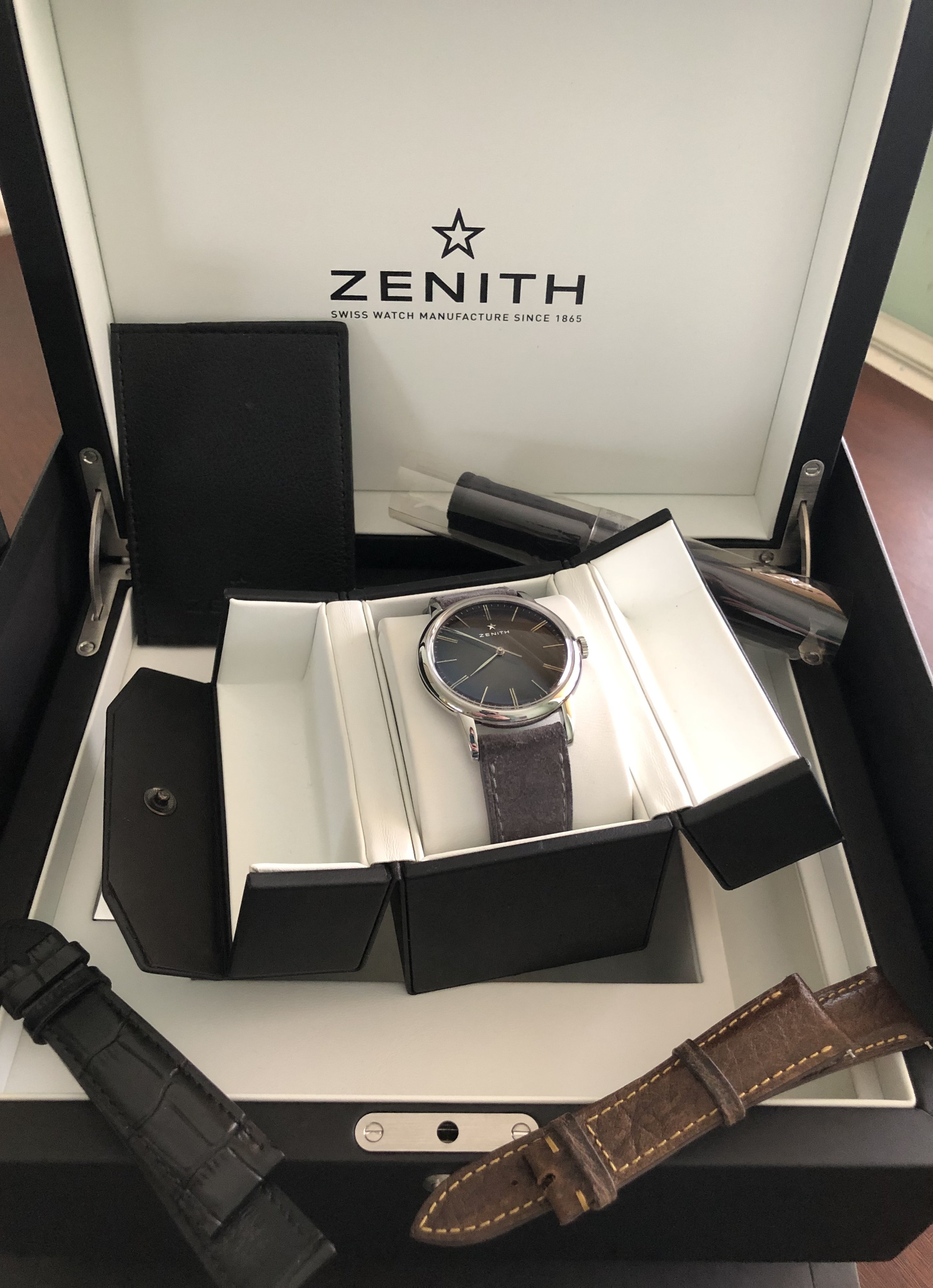 ·Up for sale is my incredible Zenith Elite Classic 39mm (Ref. 03.2290.679) from 2020 with grey/black Fume dial.