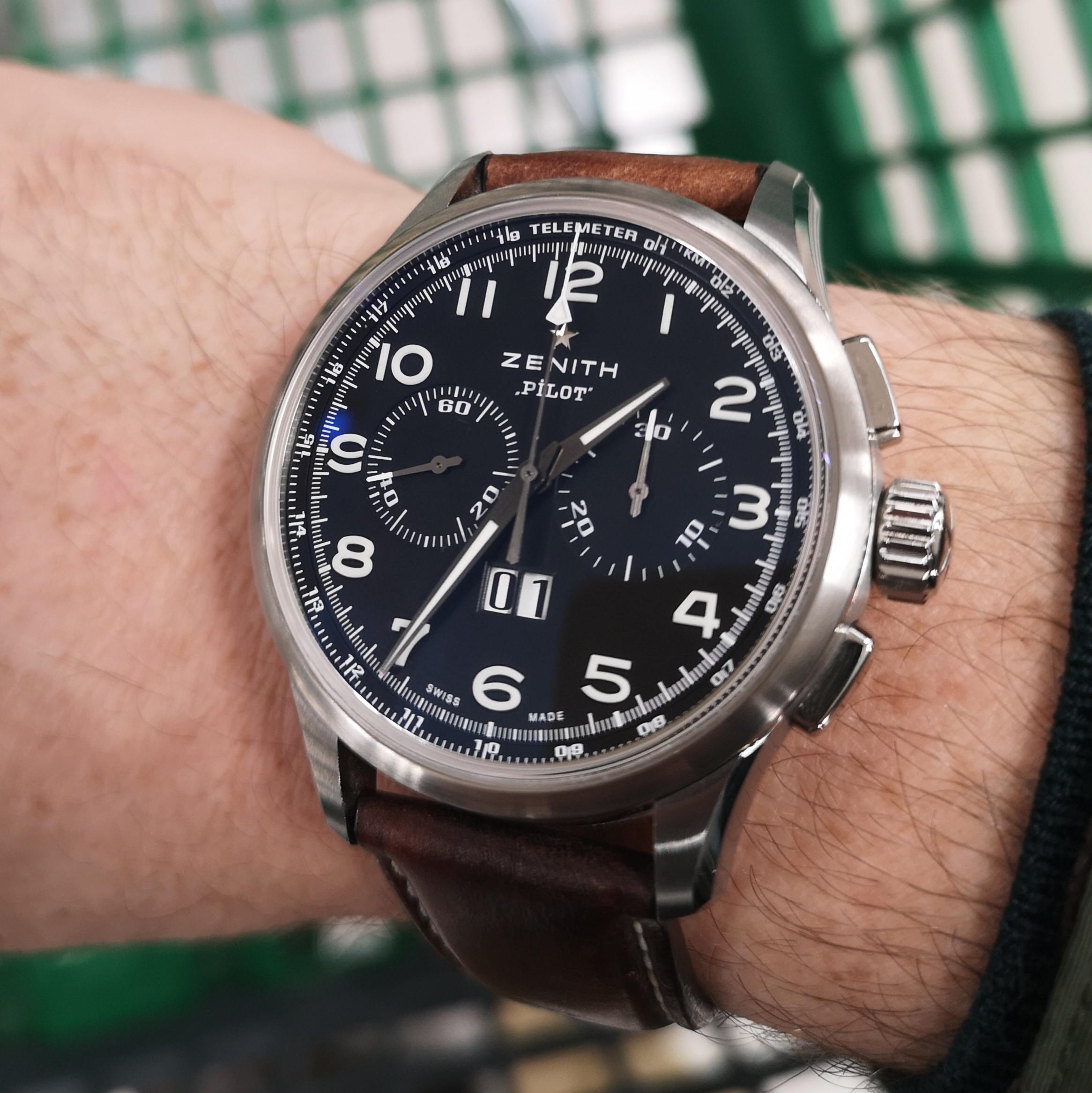 It has a El Primero calibre, a very well finished case, as you can expect from Zenith, with satin and polished parts. The dial is one of the most legible I have, with big numbers and good superluminova, and the big date complication is usefull for tose with presbyopia.