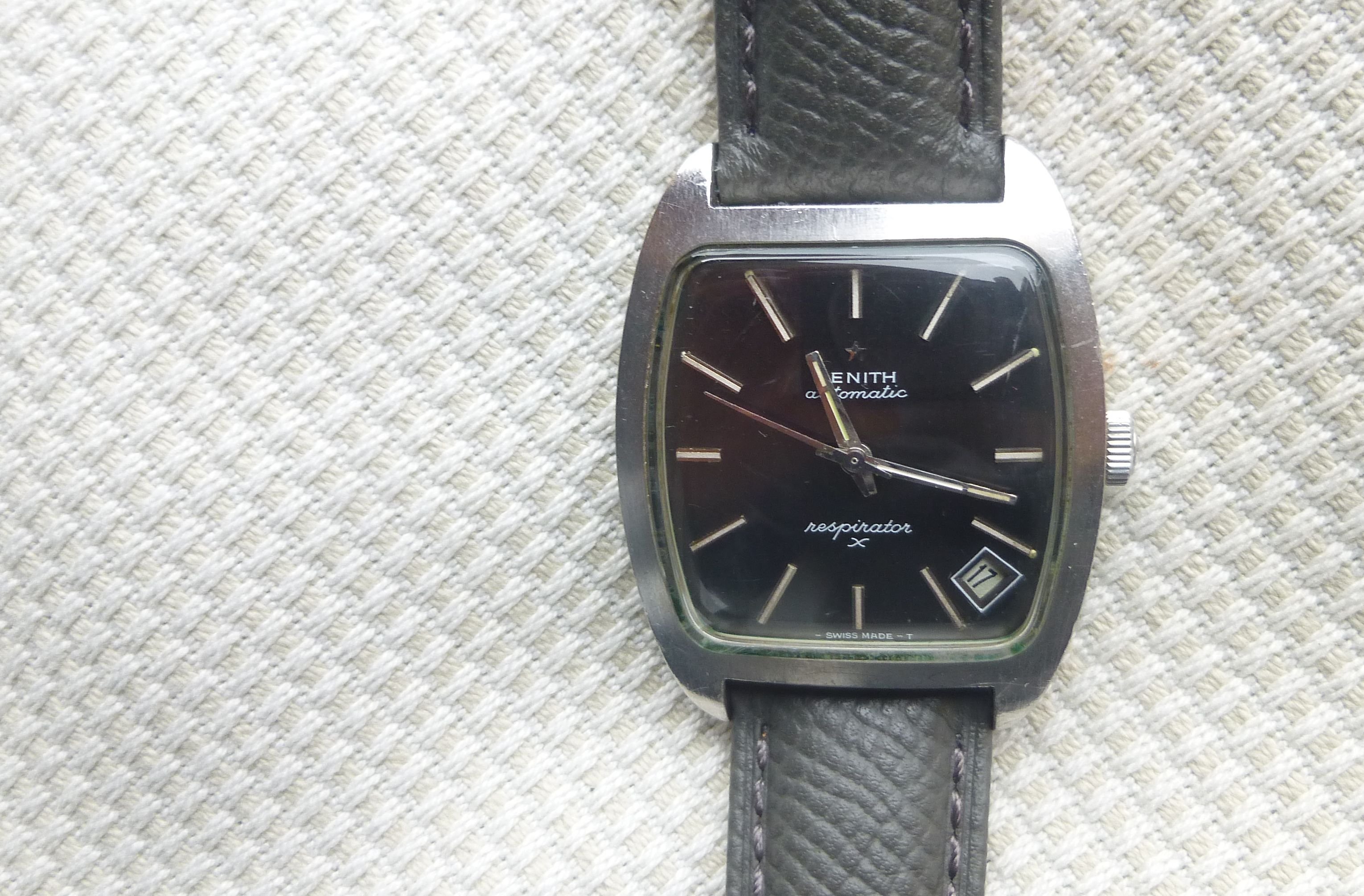 The watch is a Zenith Respirator X (model no. A7632) with the 2552PC movement (23 jewels), which was produced between 1969 and 1972. I was lucky to find the model number in a japanese catalogue from 1972 (Nakahiro):