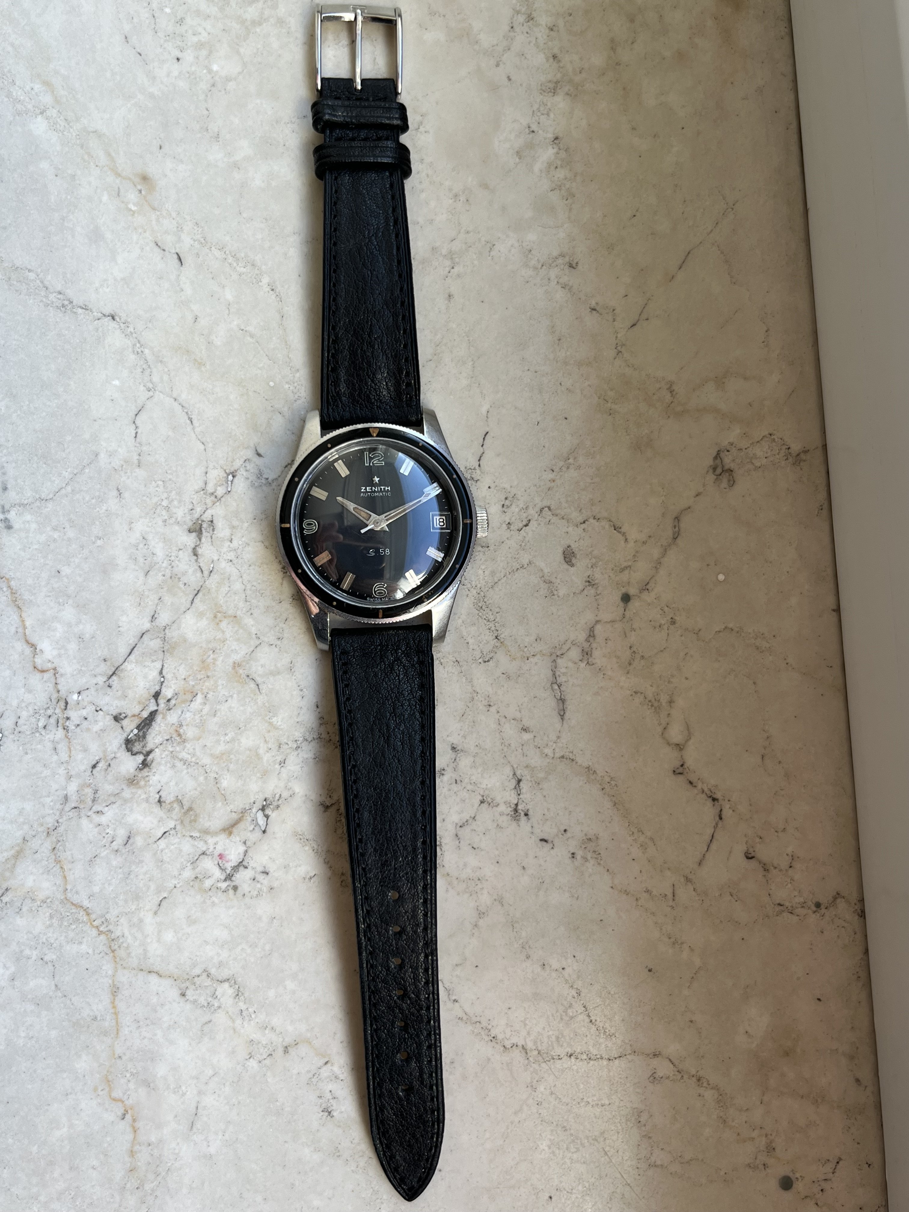 The watch comes on a custom made leather strap from Torres with a Zenith buckle.