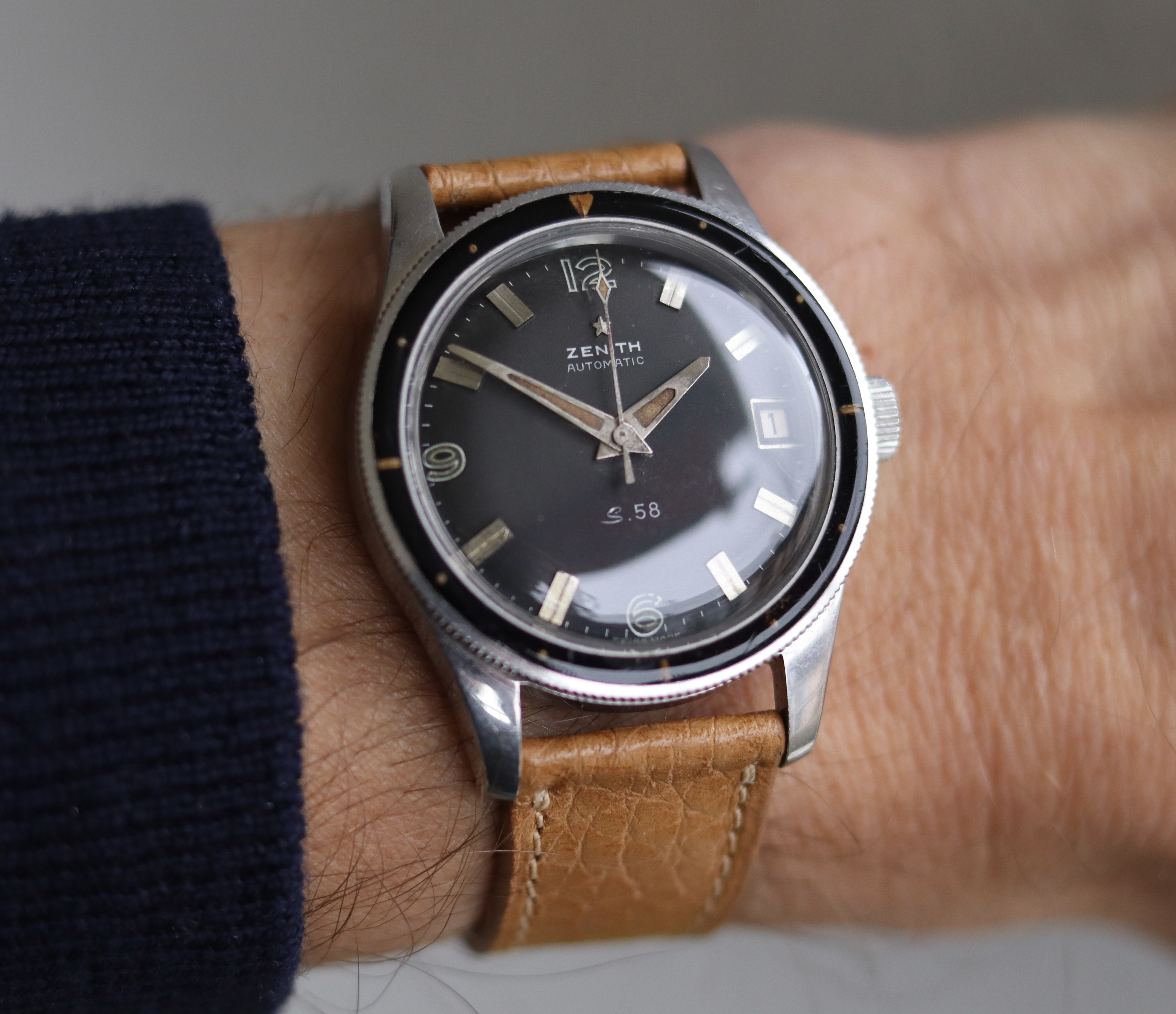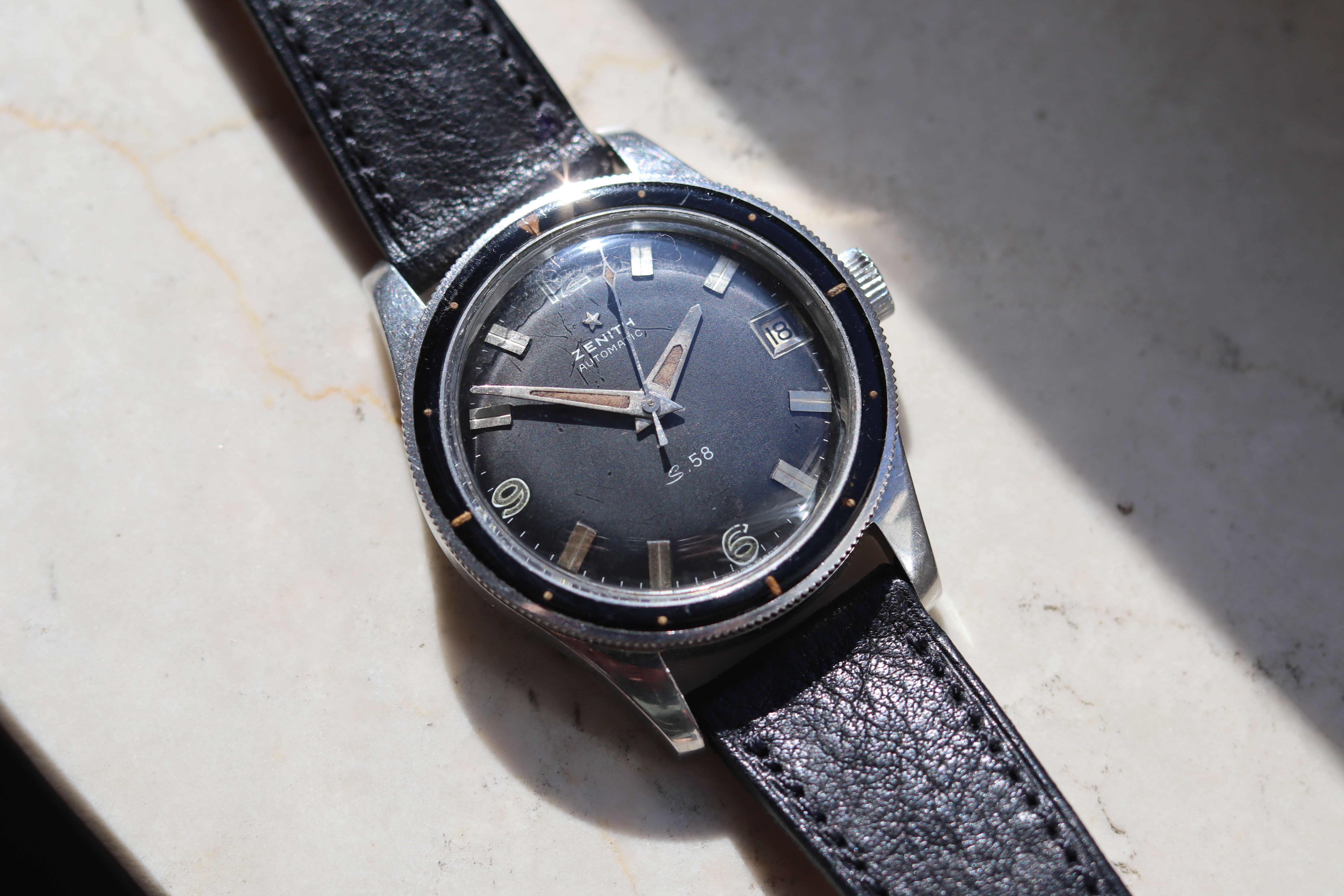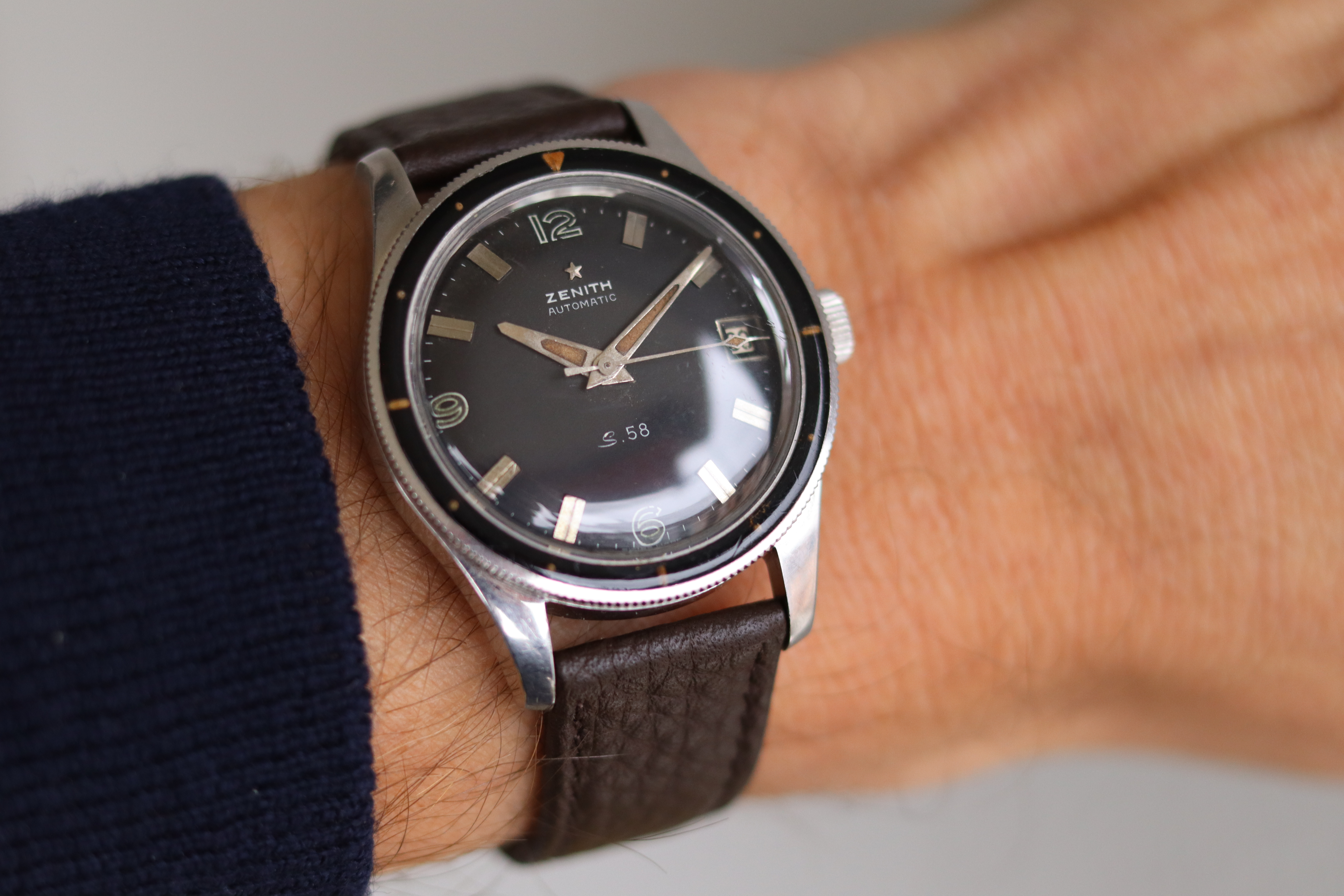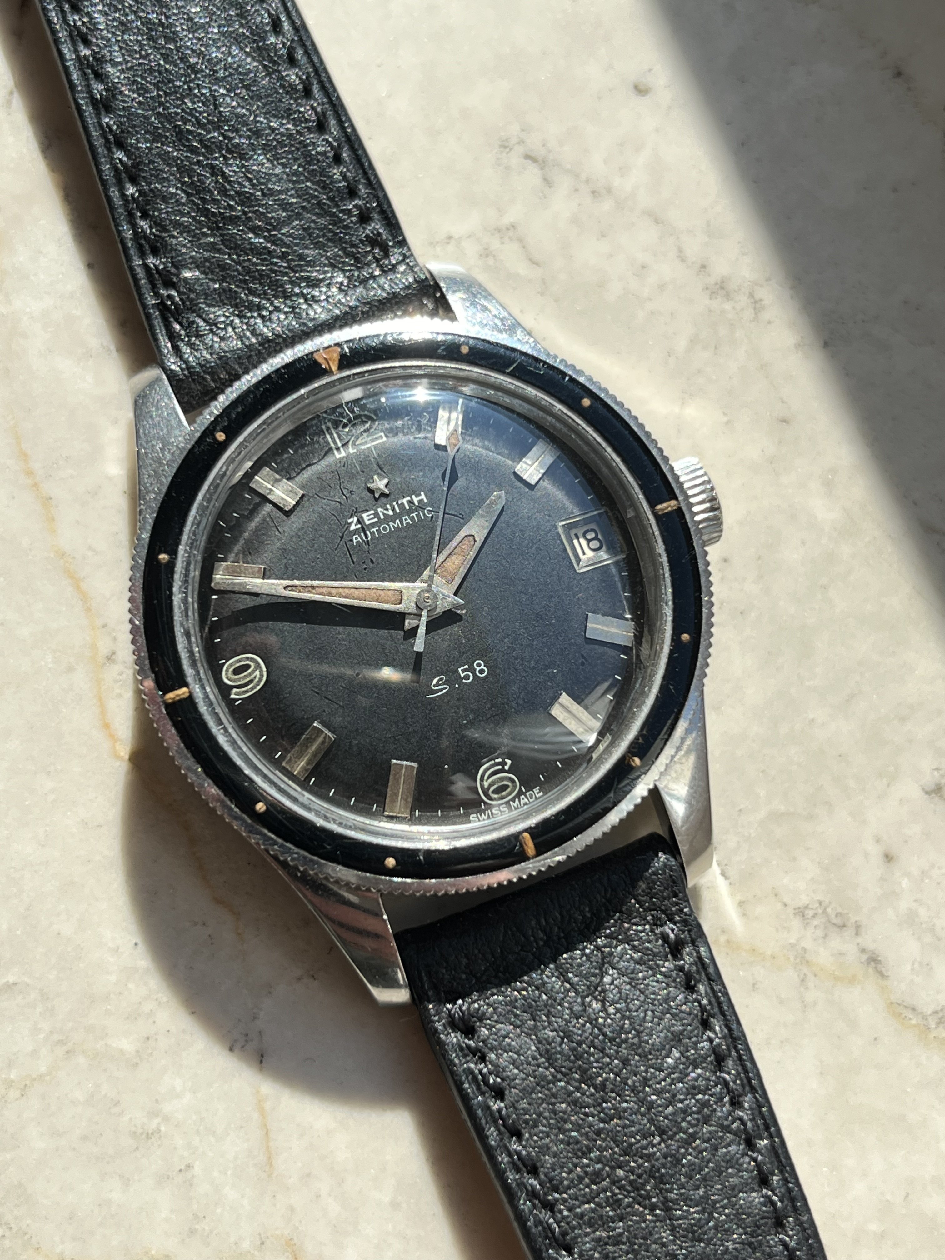 ·For sale is this beautiful example of a Zenith S58 Mark IV in a condition that is rare to find. This timepiece features a beautiful Bakelite bezel and a 38mm case, making it both stylish and wearable.