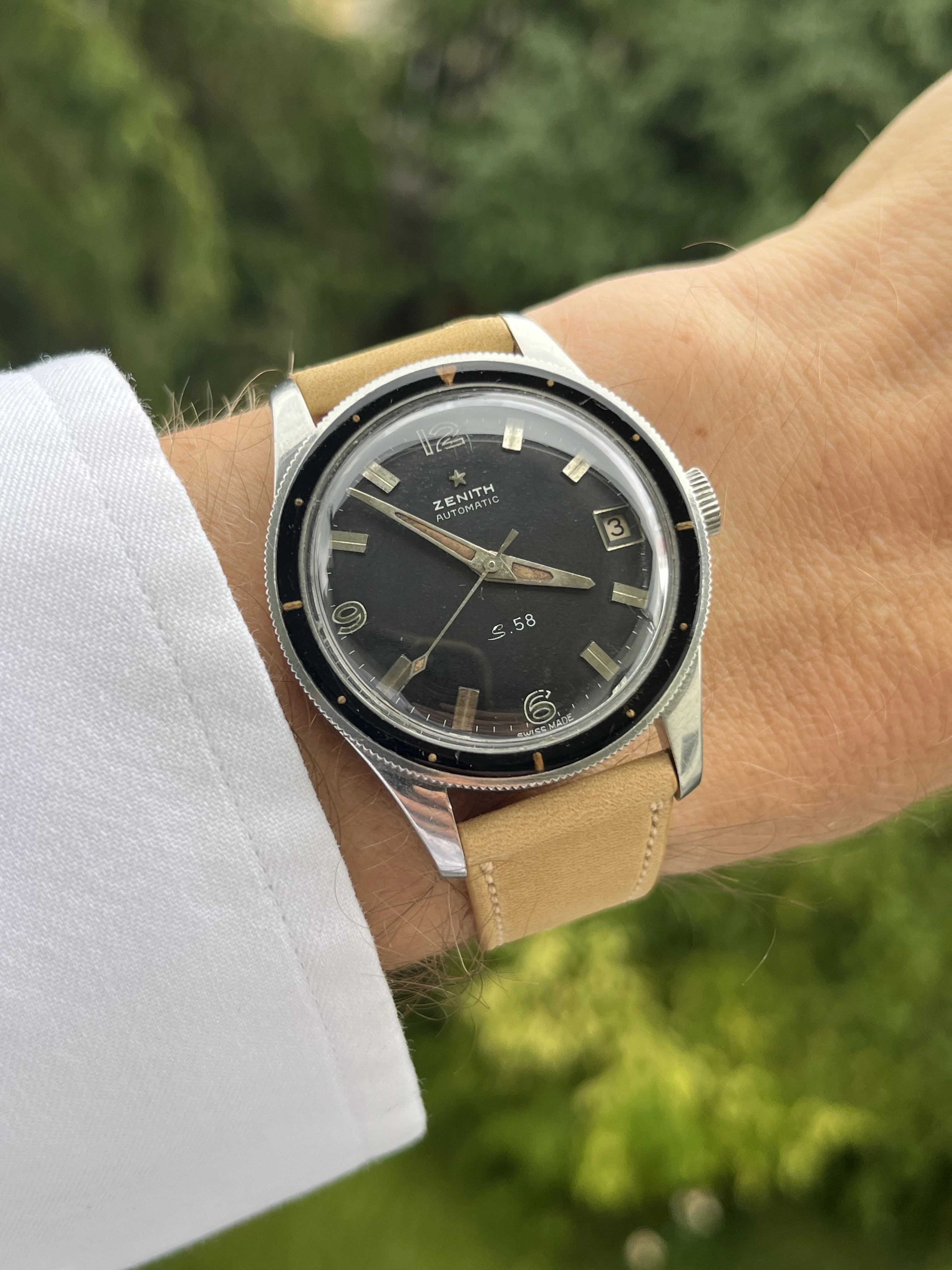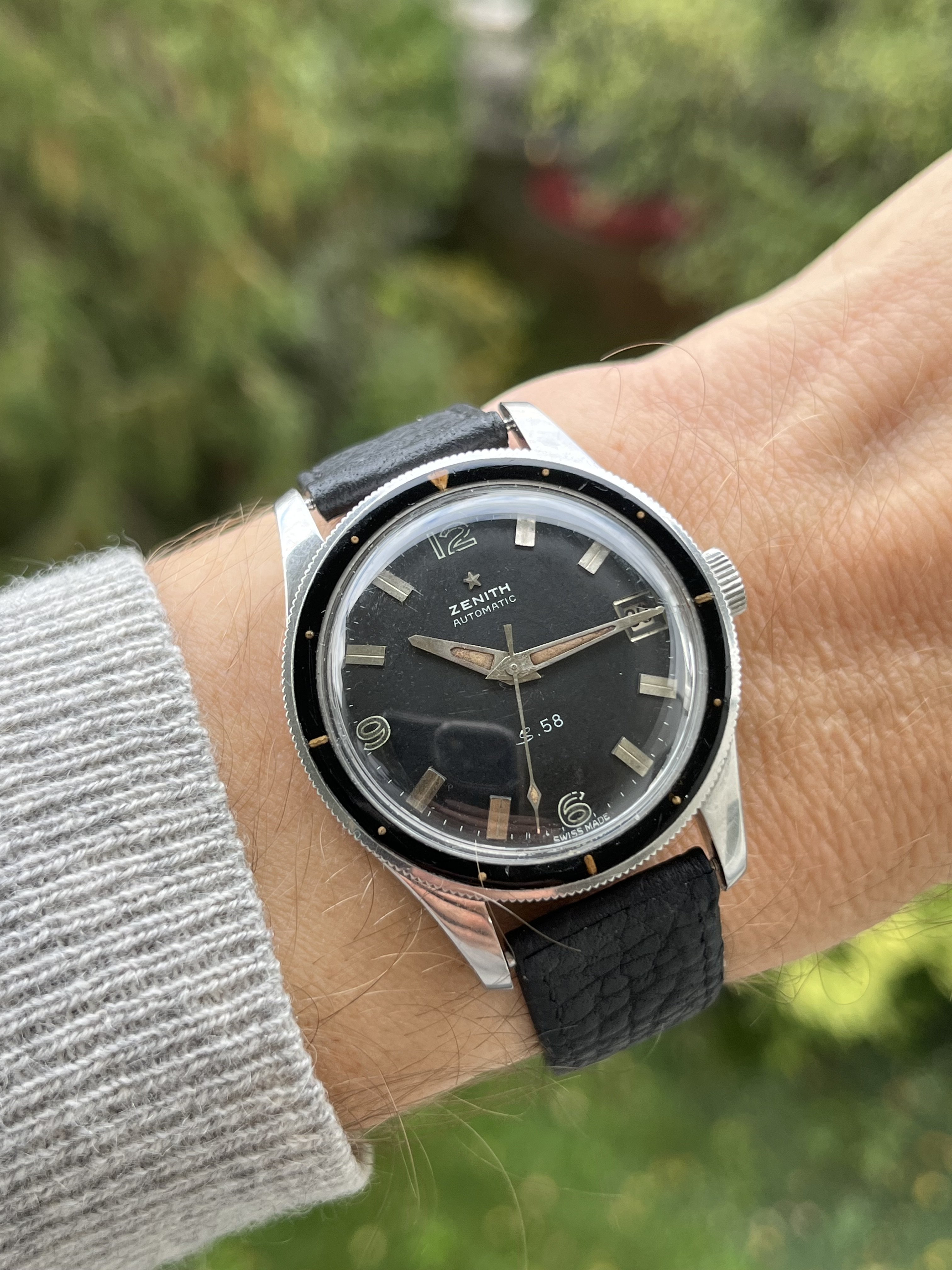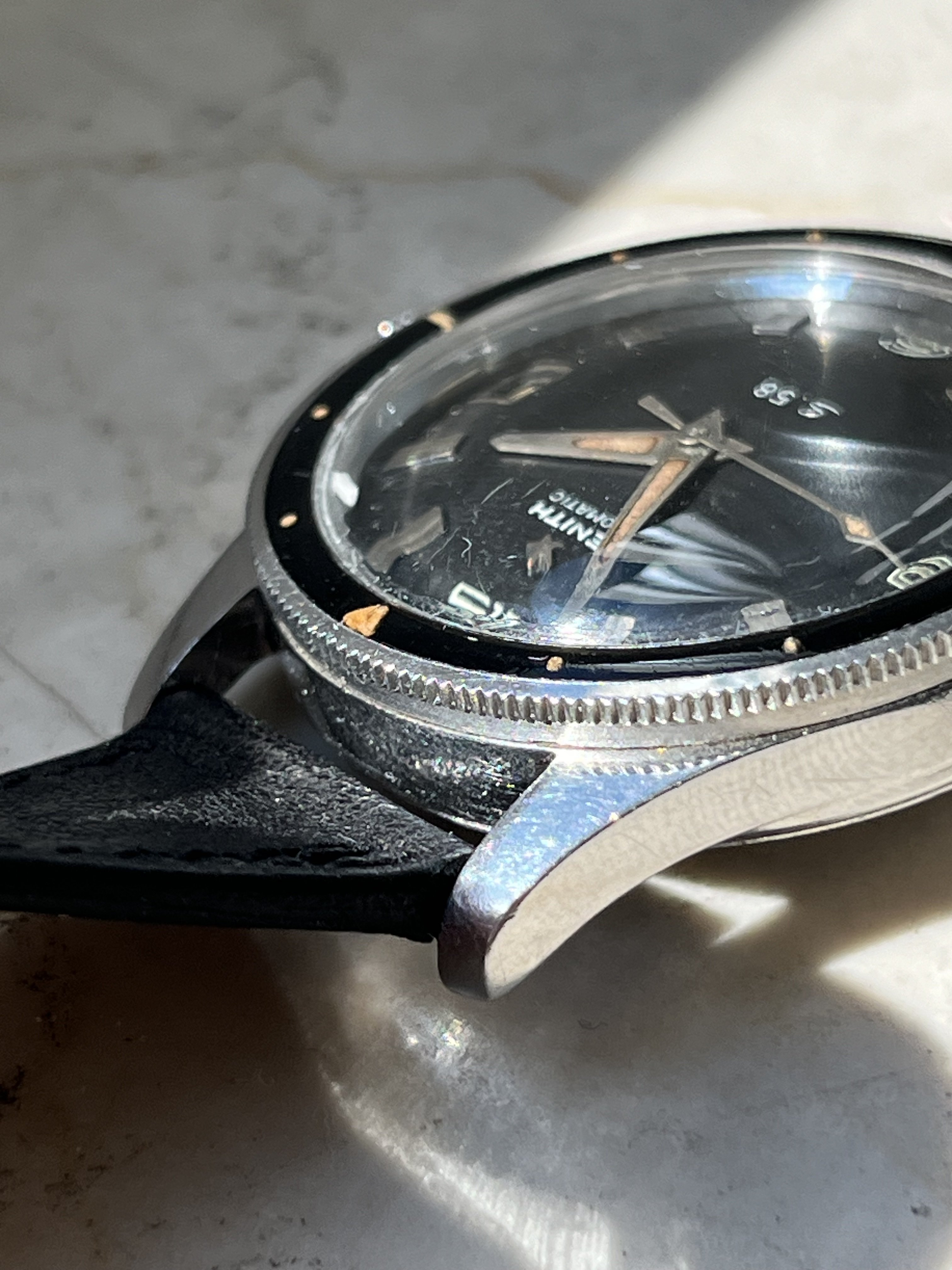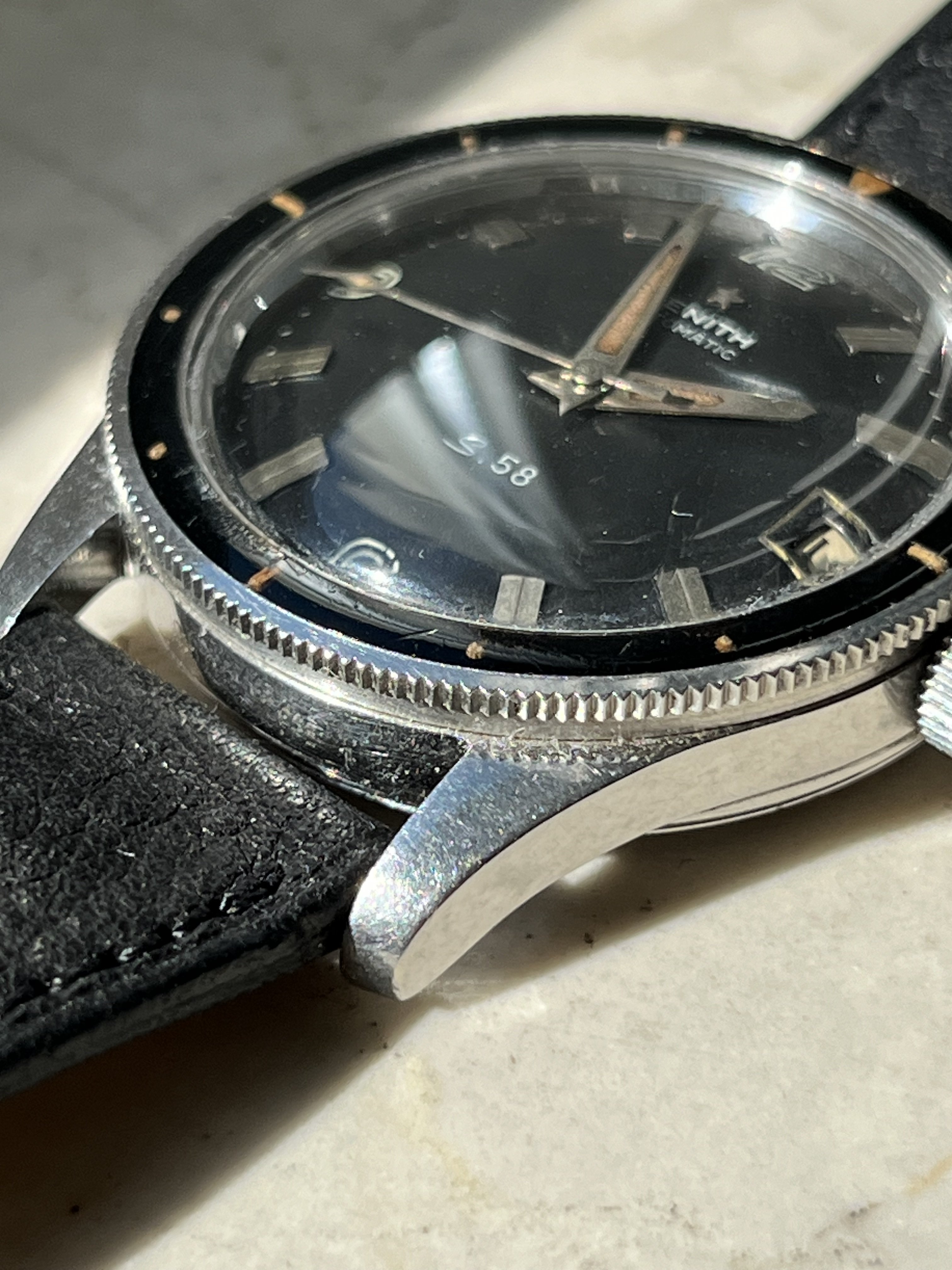 ·For sale is this beautiful example of a Zenith S58 Mark IV in a condition that is rare to find. This timepiece features a beautiful Bakelite bezel and a 38mm case, making it both stylish and wearable.