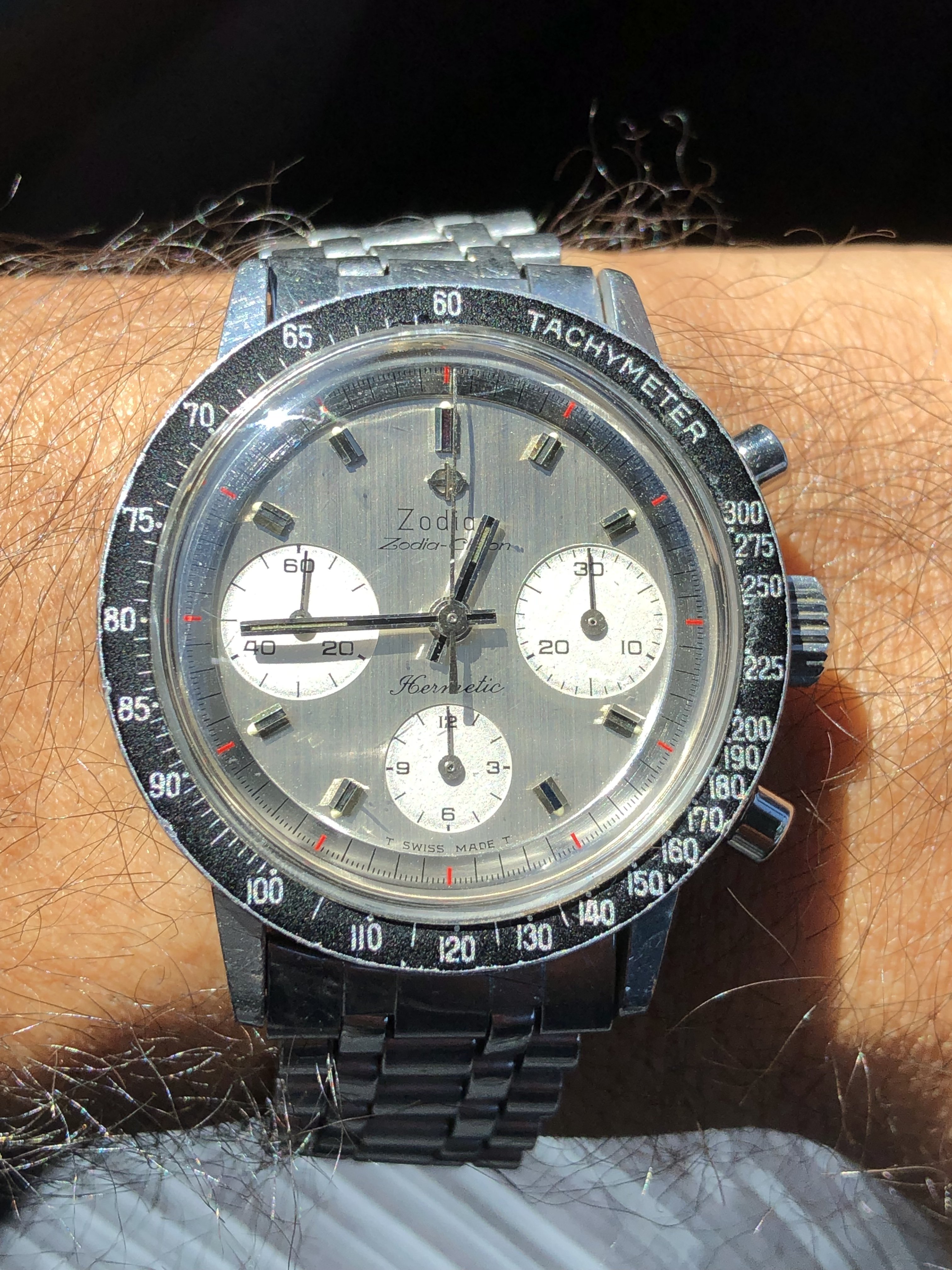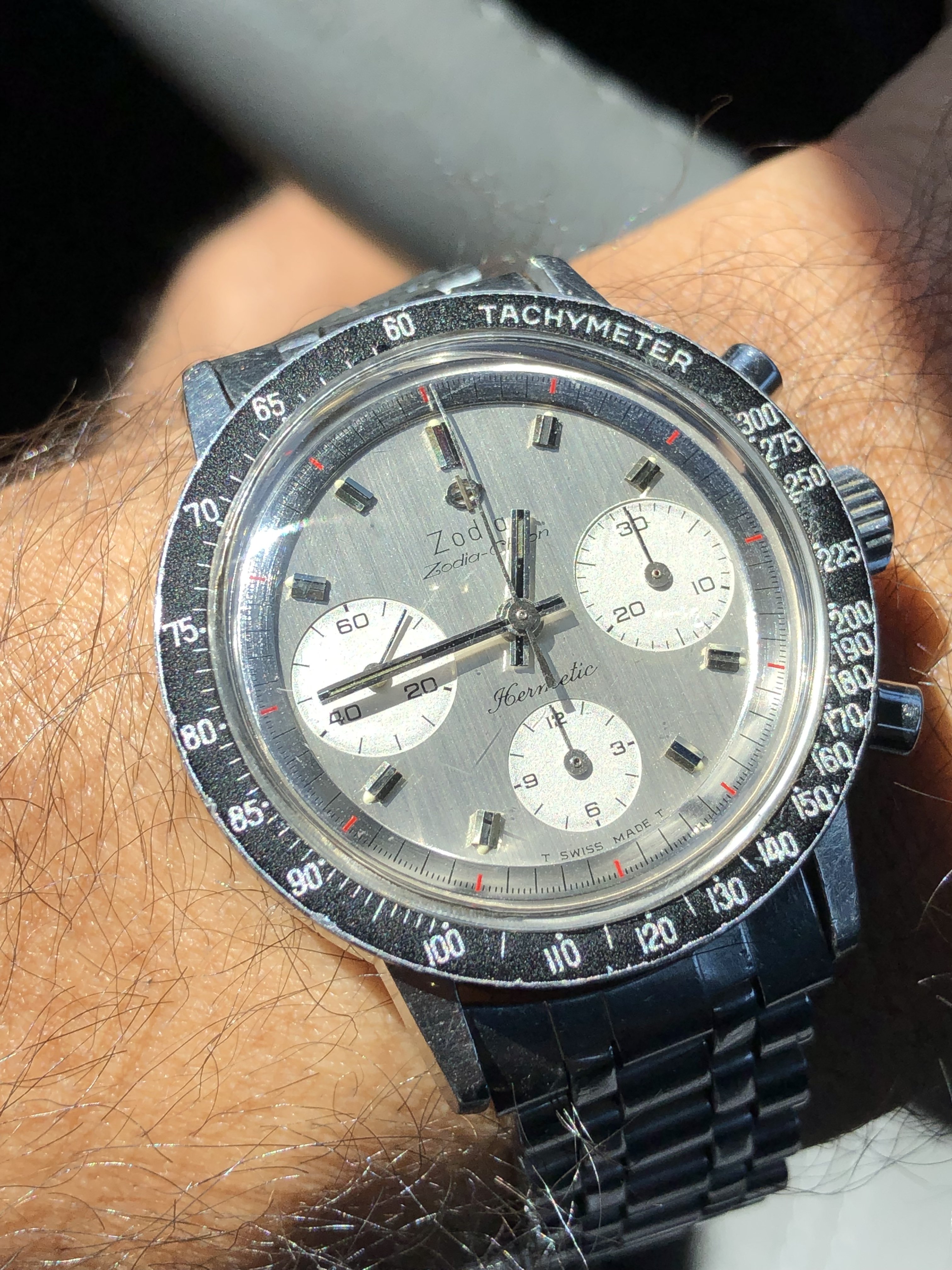 Posts 463 Likes 6,172 Gopher ·Jan 5, 2023 septentrio Great on Komfit! Anyone have tips to source the bracelet? @maanu would it be possible to post some pics (clasp, stamps,…) of yours? My understanding is the Sea-Chron came on a Kreisler Stelux coffin-link Zodiac-signed bracelet. Should be fun hunting this one! Your Sea-Chron is stunning! I rarely see the bezel lume dot intact.