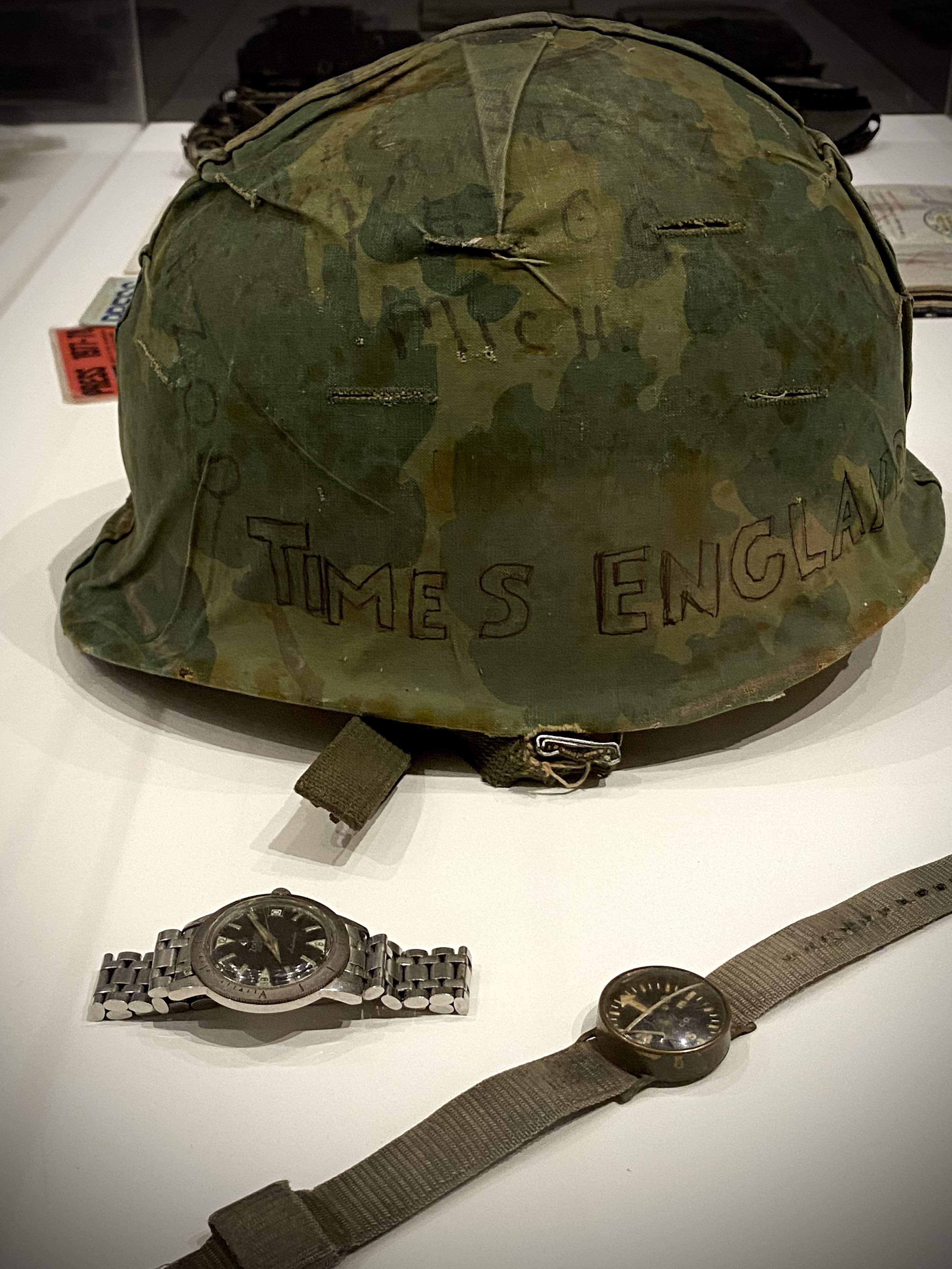 In the center of one room was a display case with various memorabilia, including the Nikon that saved his life by stopping an AK-47 shot intended for him.