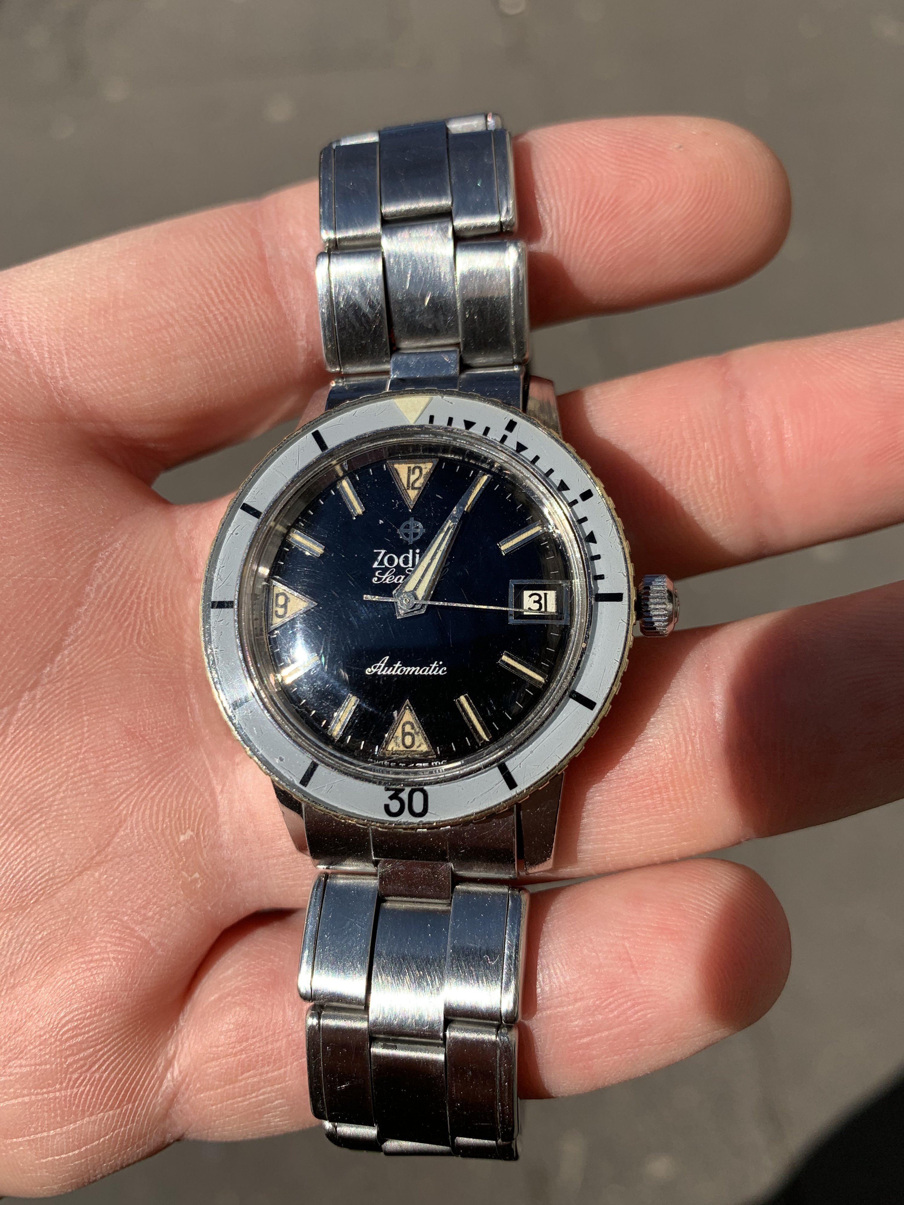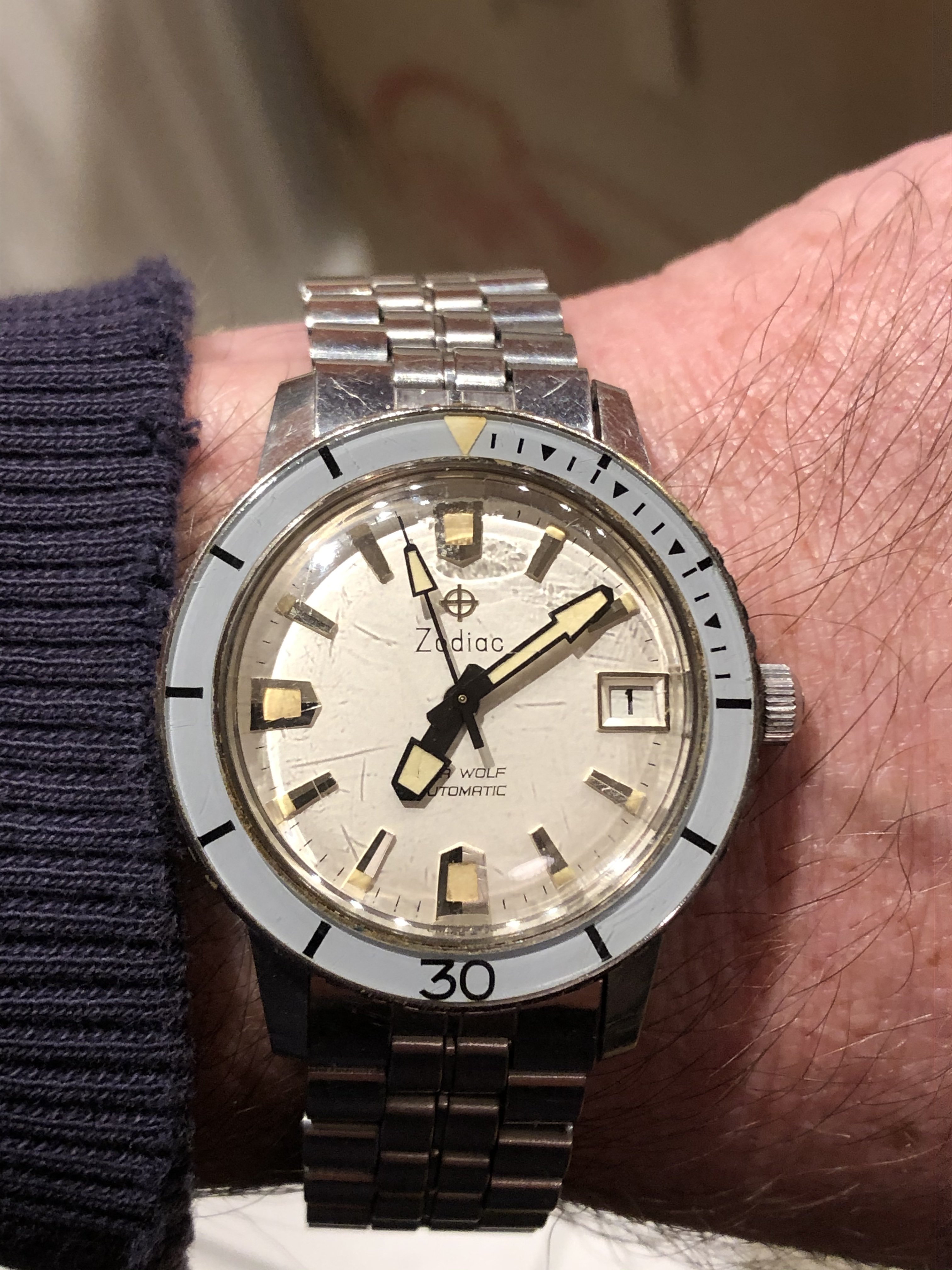 Your Sea Wolf with the white dial is indeed stunning. A crystal polishing will make it look pristine. I'm not very good at dating vintage Zodiacs well yet, besides the decade possibly, so maybe you could enlighten me on this or the Mk designations.