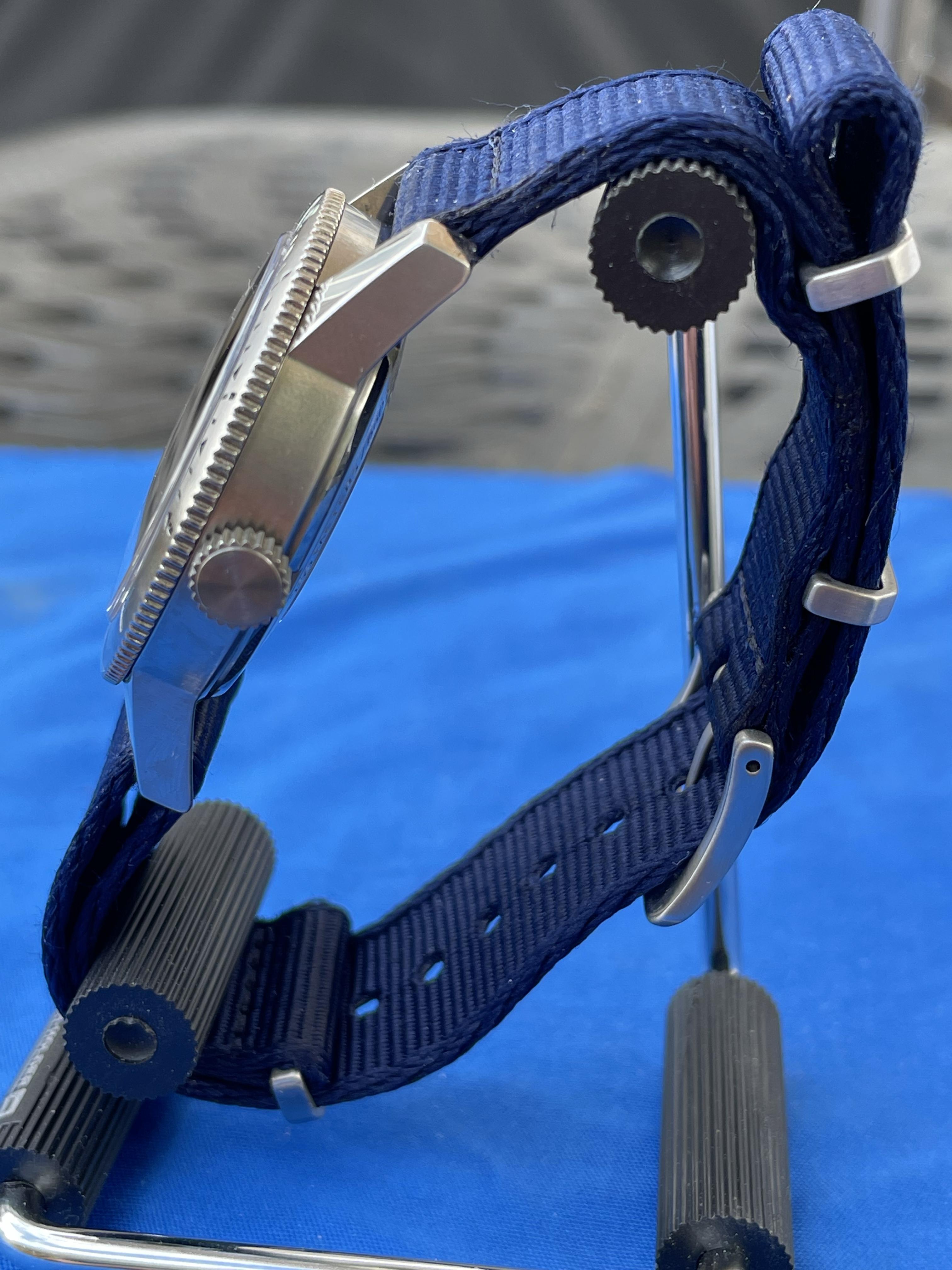 Straps: OEM Brown Leather NATO and Aftermarket 2-piece blue NATO style strap pictured